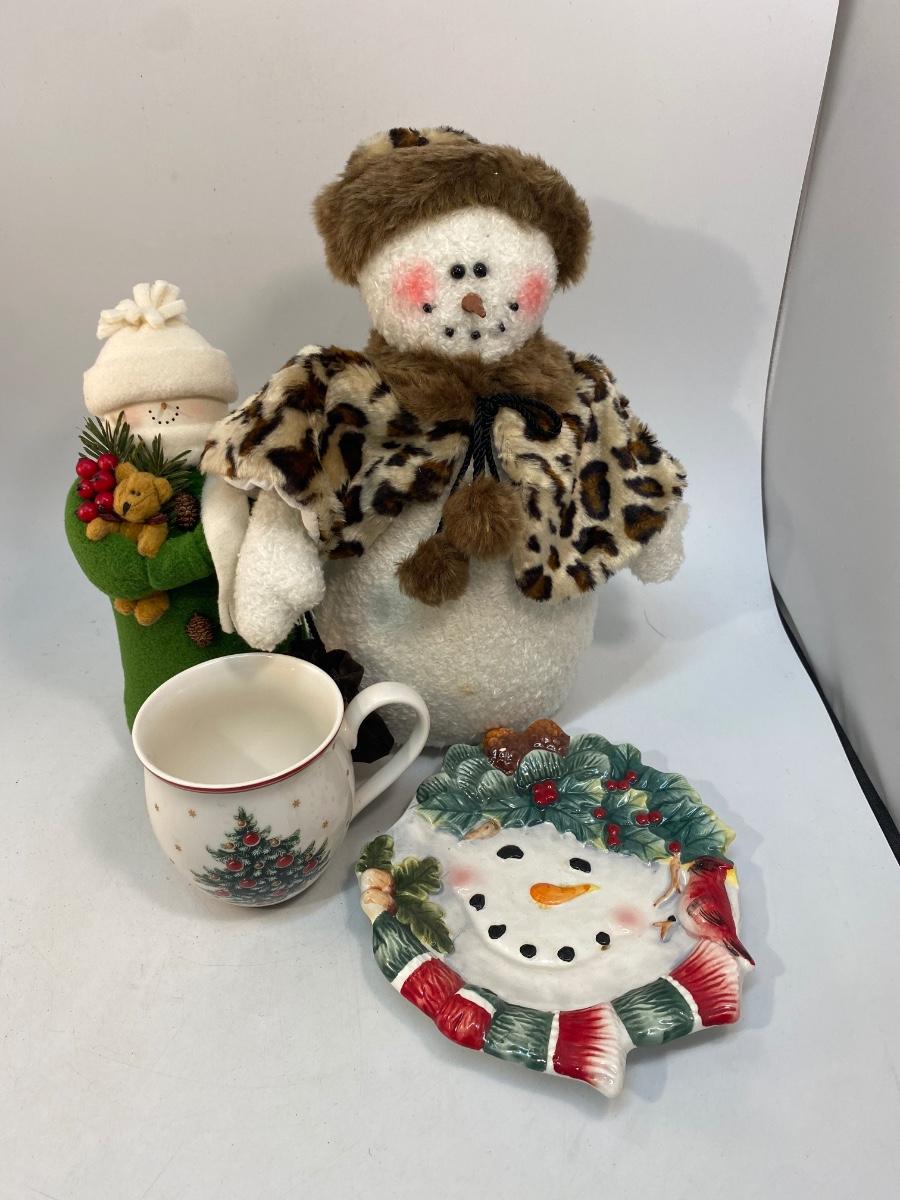 Snowman Themed Holiday Christmas Decor Lot. In good condition.
