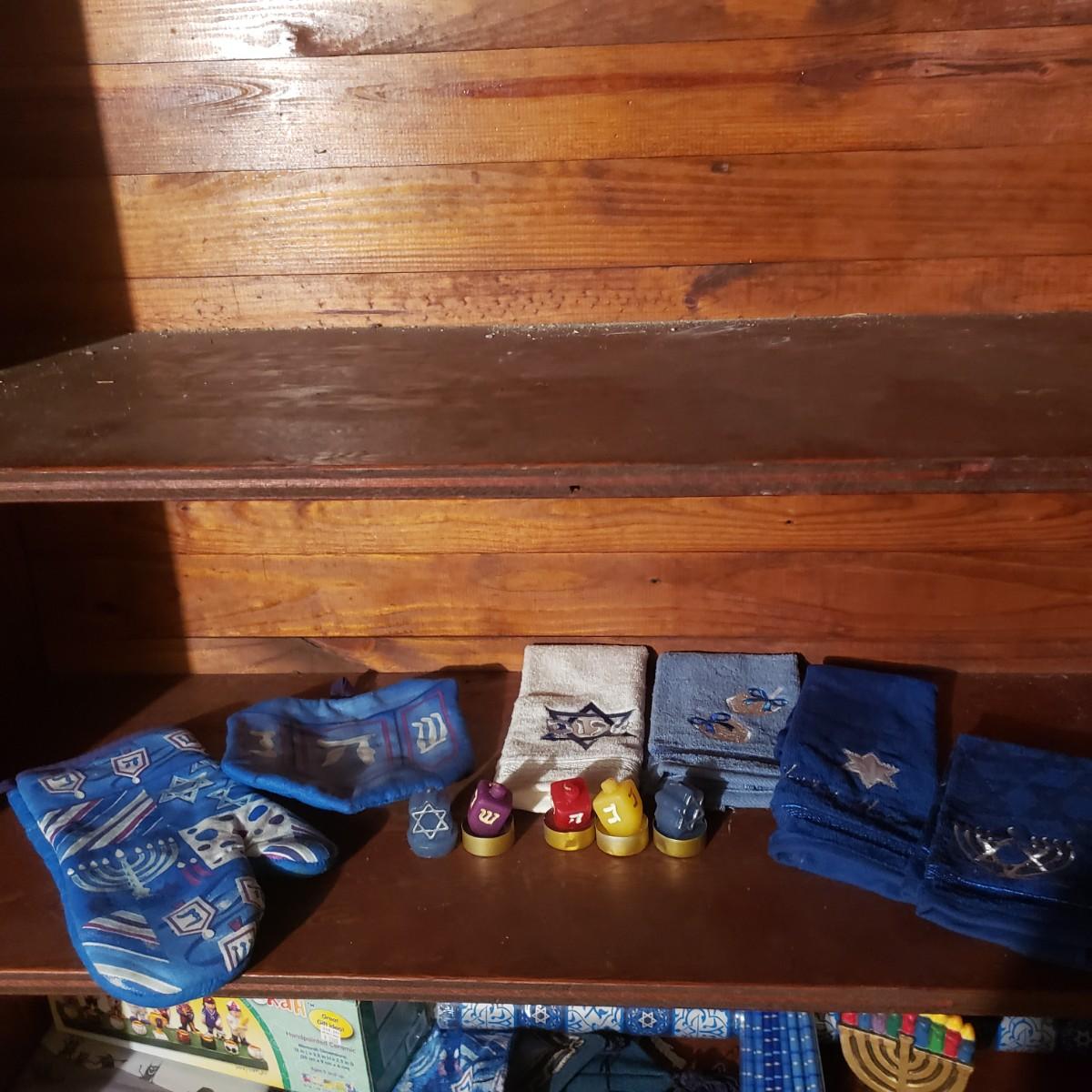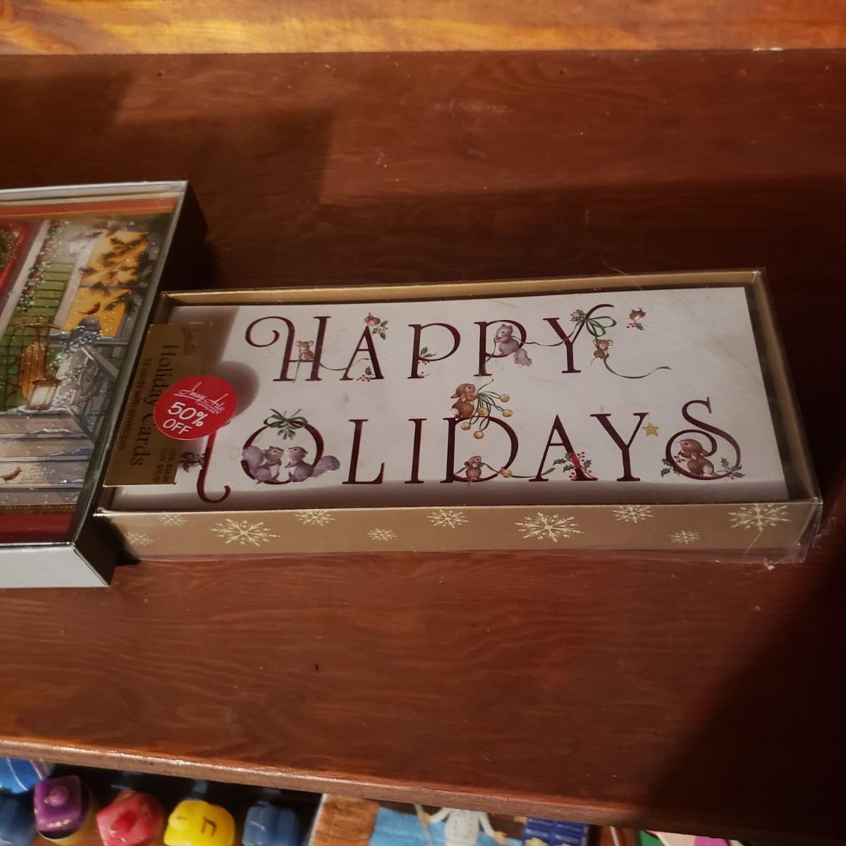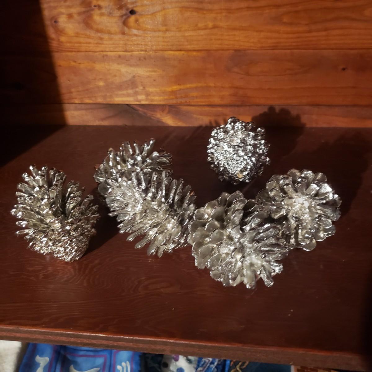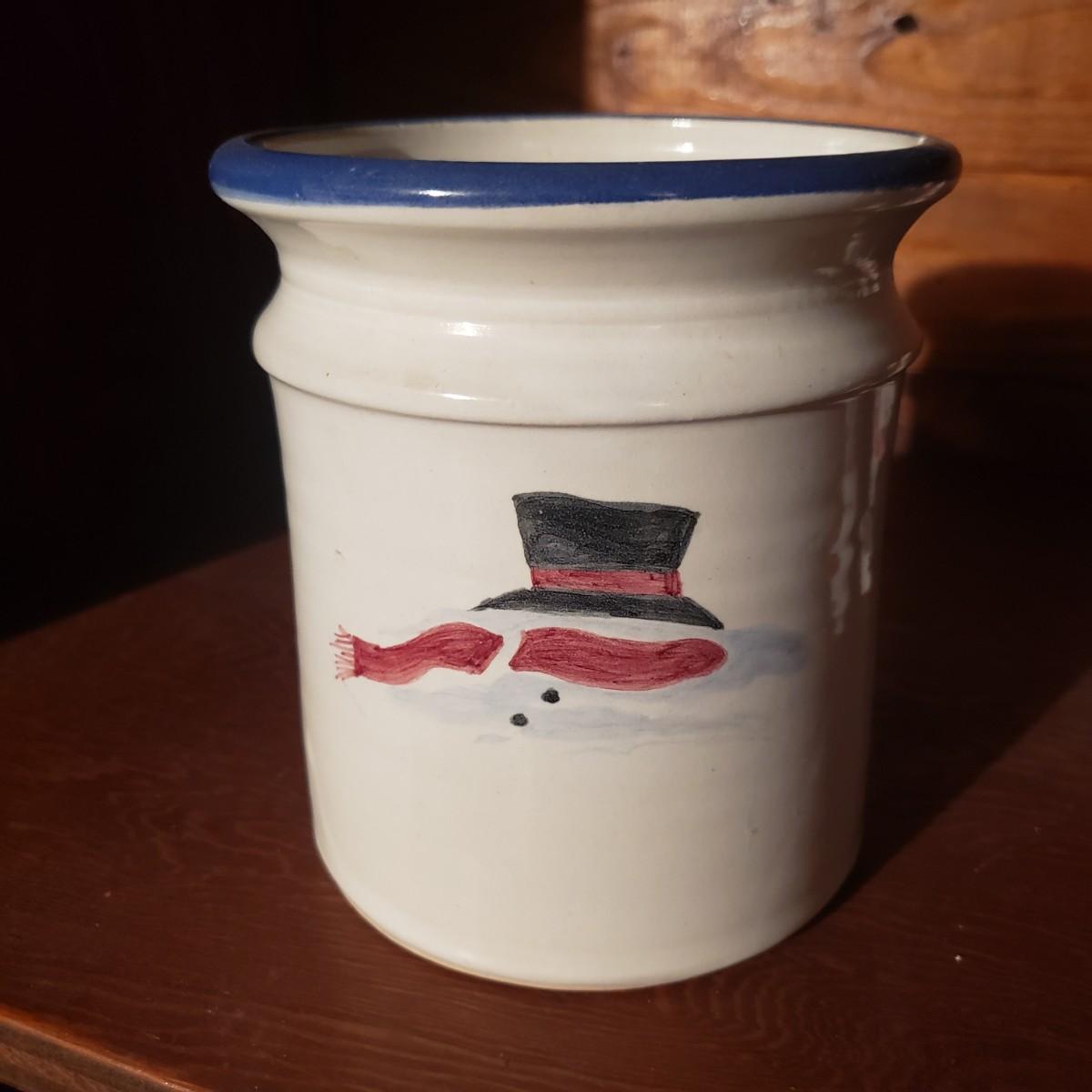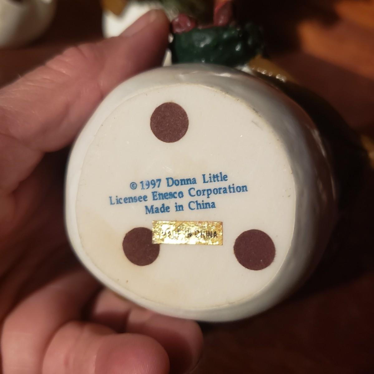 This large lot of decor will brighten your holidays! There is so much, so here are some highlights, a Pampered Chef glass snowman plate, multiple decorative cheese/dip knives, a pottery snowman, silver metal pinecones, Hanukkah sports minora, towels and gift paper. The Hanukkah book must have gotten wet, but still works! The majority of the bulbs in the storage bin are plastic with a few glass ones. The set of four snowpeople by Donna Little are adorable! They measure approximately 2" x 4"H.