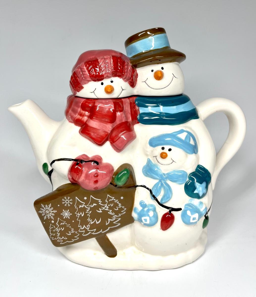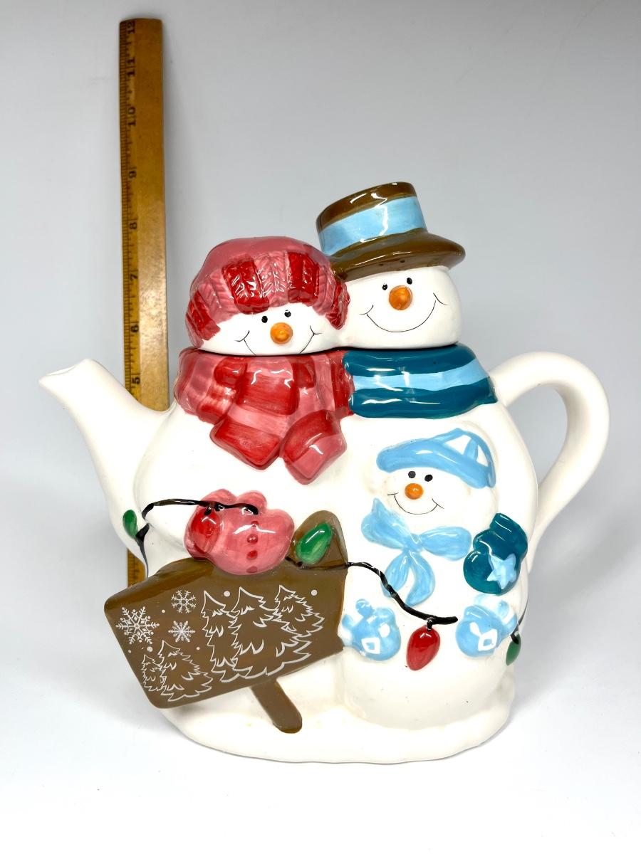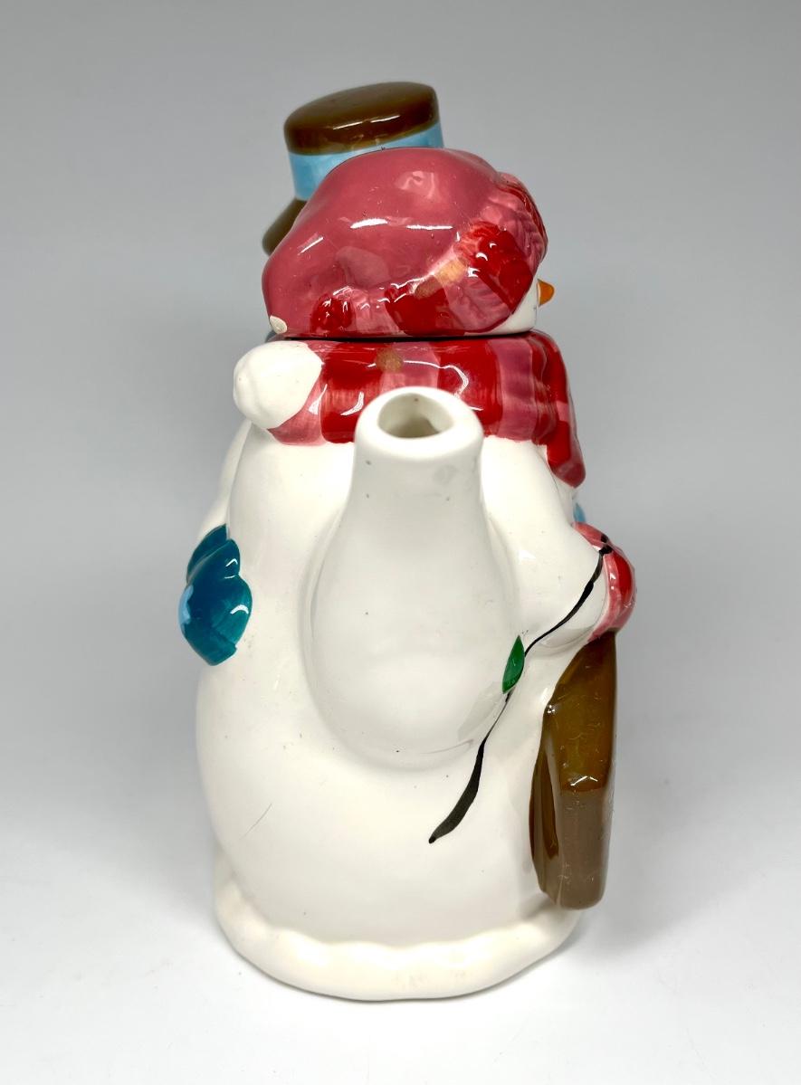 Snowmen pair ceramic tea pot Christmas holiday decor