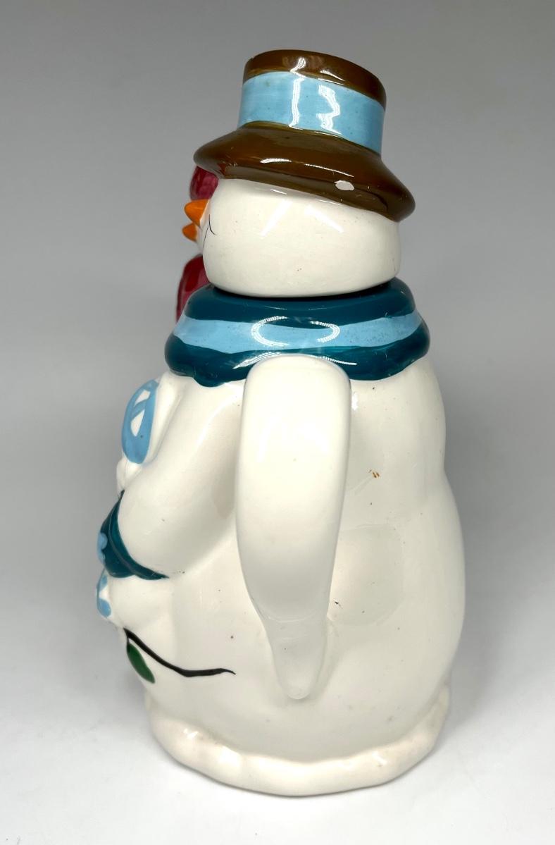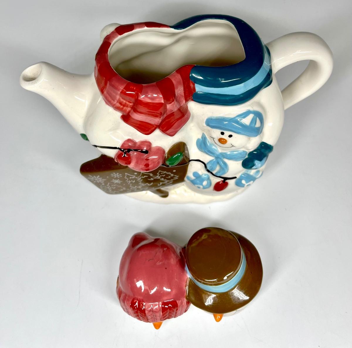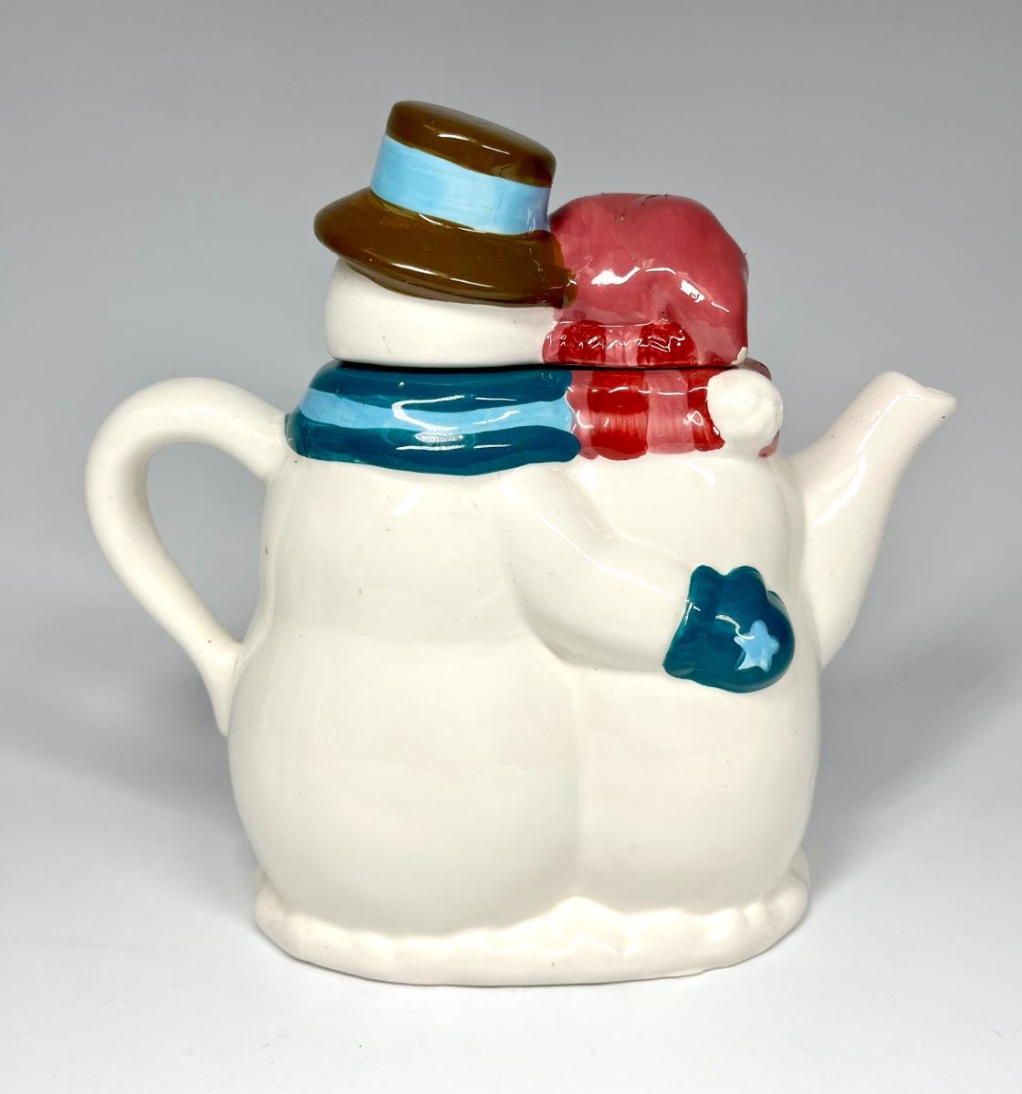Snowmen pair ceramic tea pot Christmas holiday decor