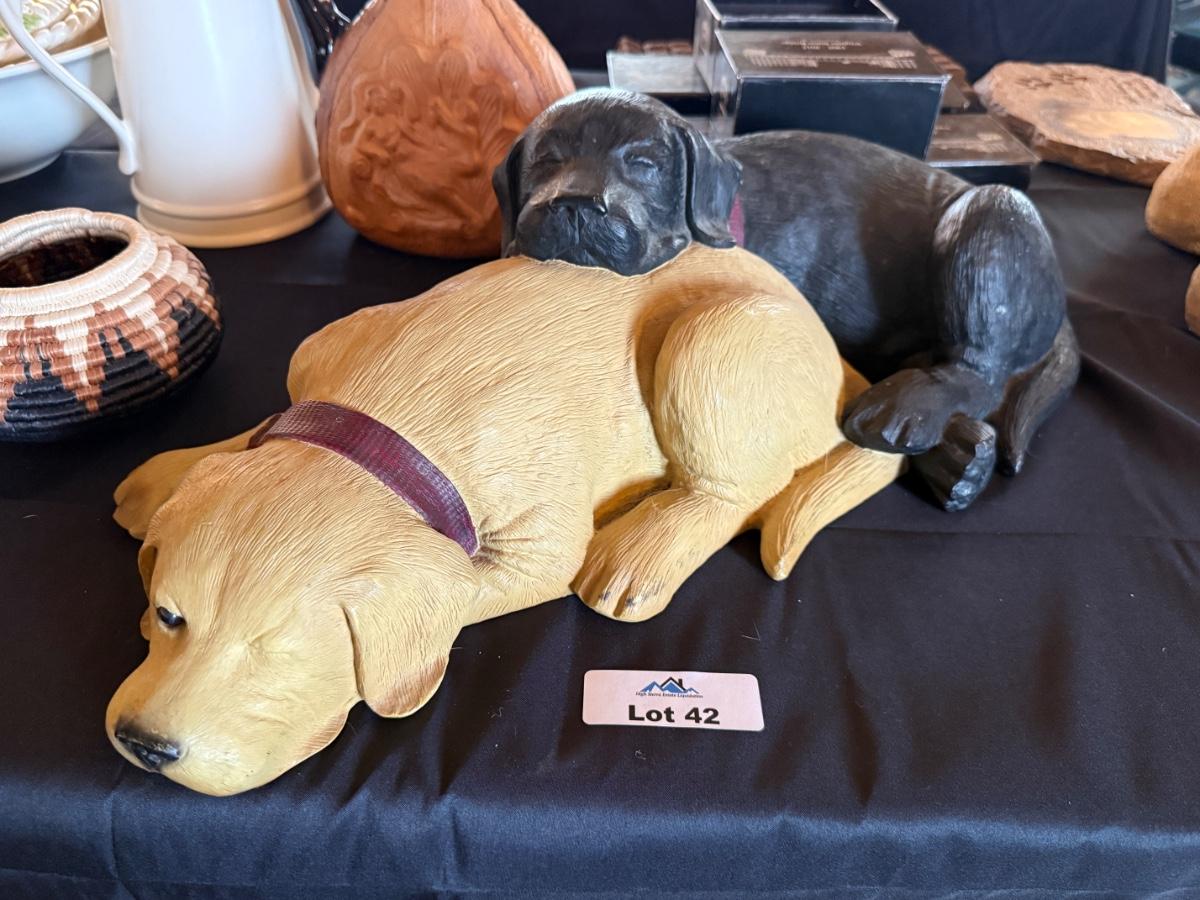Snuggly Siblings Dog statue by Big Sky Carvers