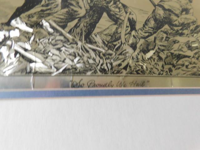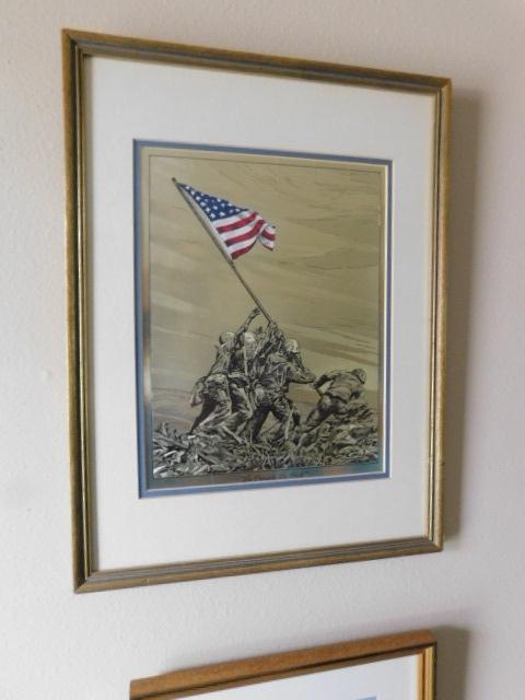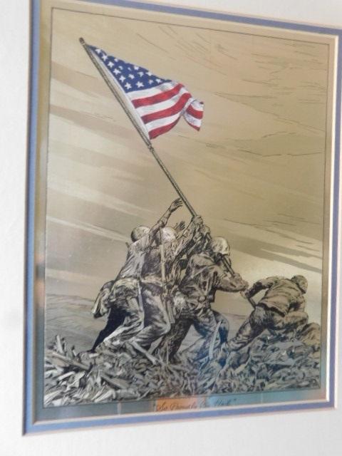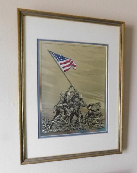 'So Proudly We Hail'  Iwo Jima WWII US Flag Raise Color on Foil Framed Art 14"x18"