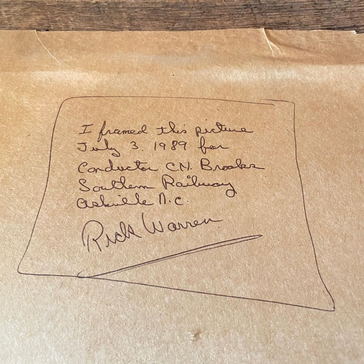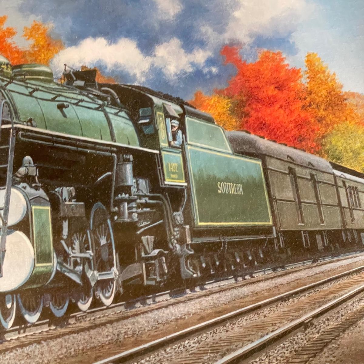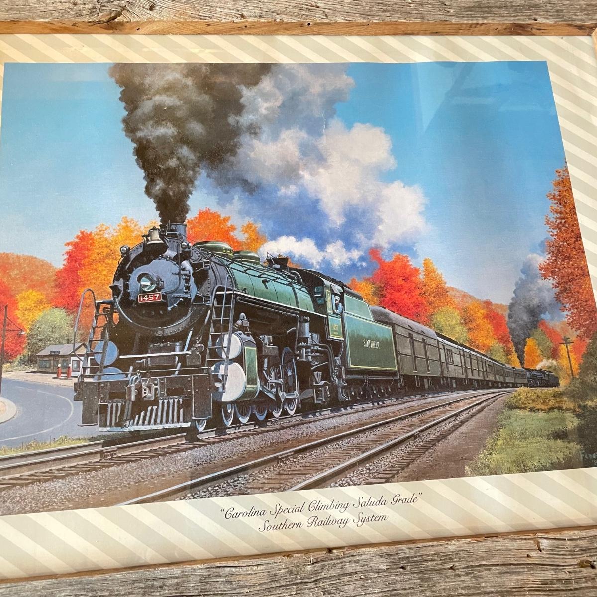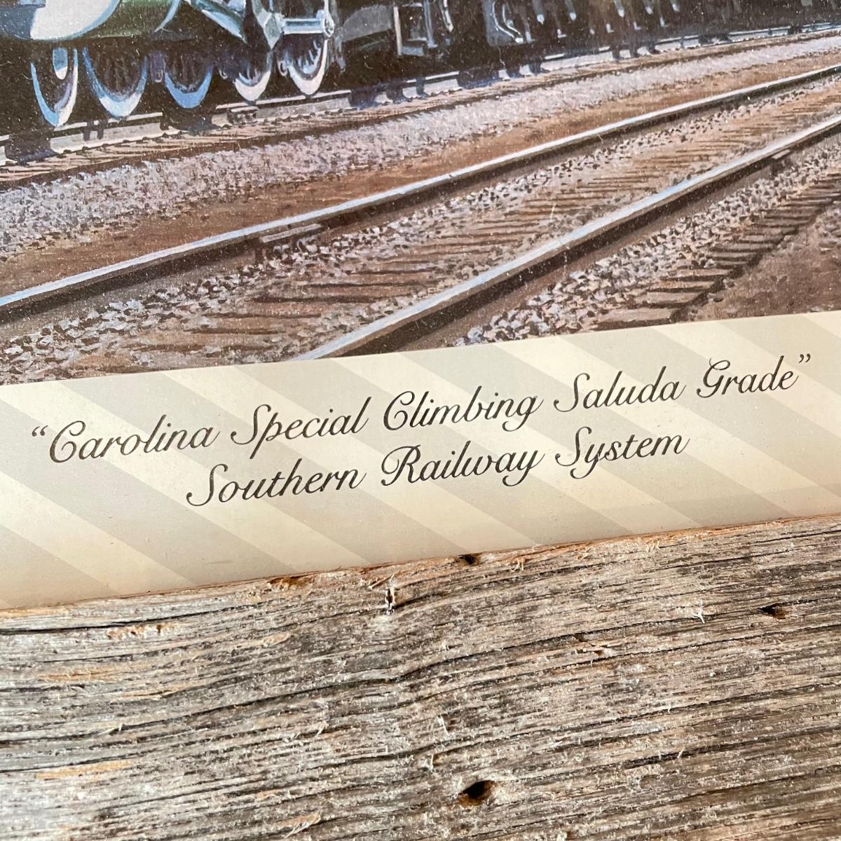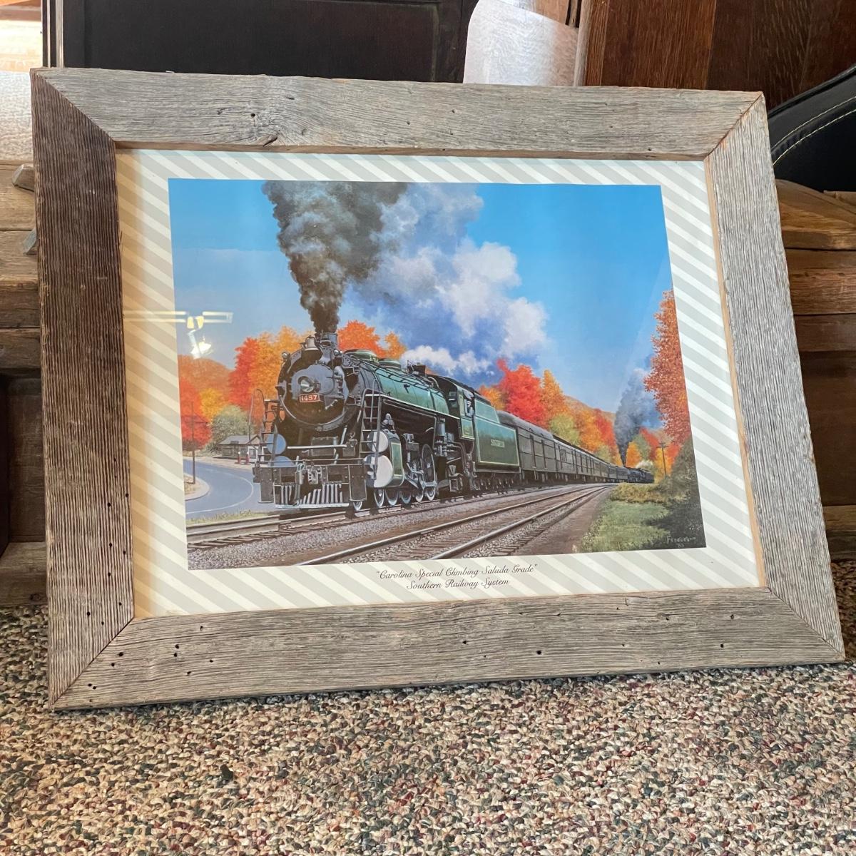 Southern Railway System “ Carolina Special Climbing Saluda Grade” with a rustic wood frame and a FOGG “˜83 signature. Art sits behind glass in a frame that measures 24.5” x 19.5”. See images. Shipping available. Please call UPS with dimensions at 828-252-6930 for a shipping quote prior to bidding.