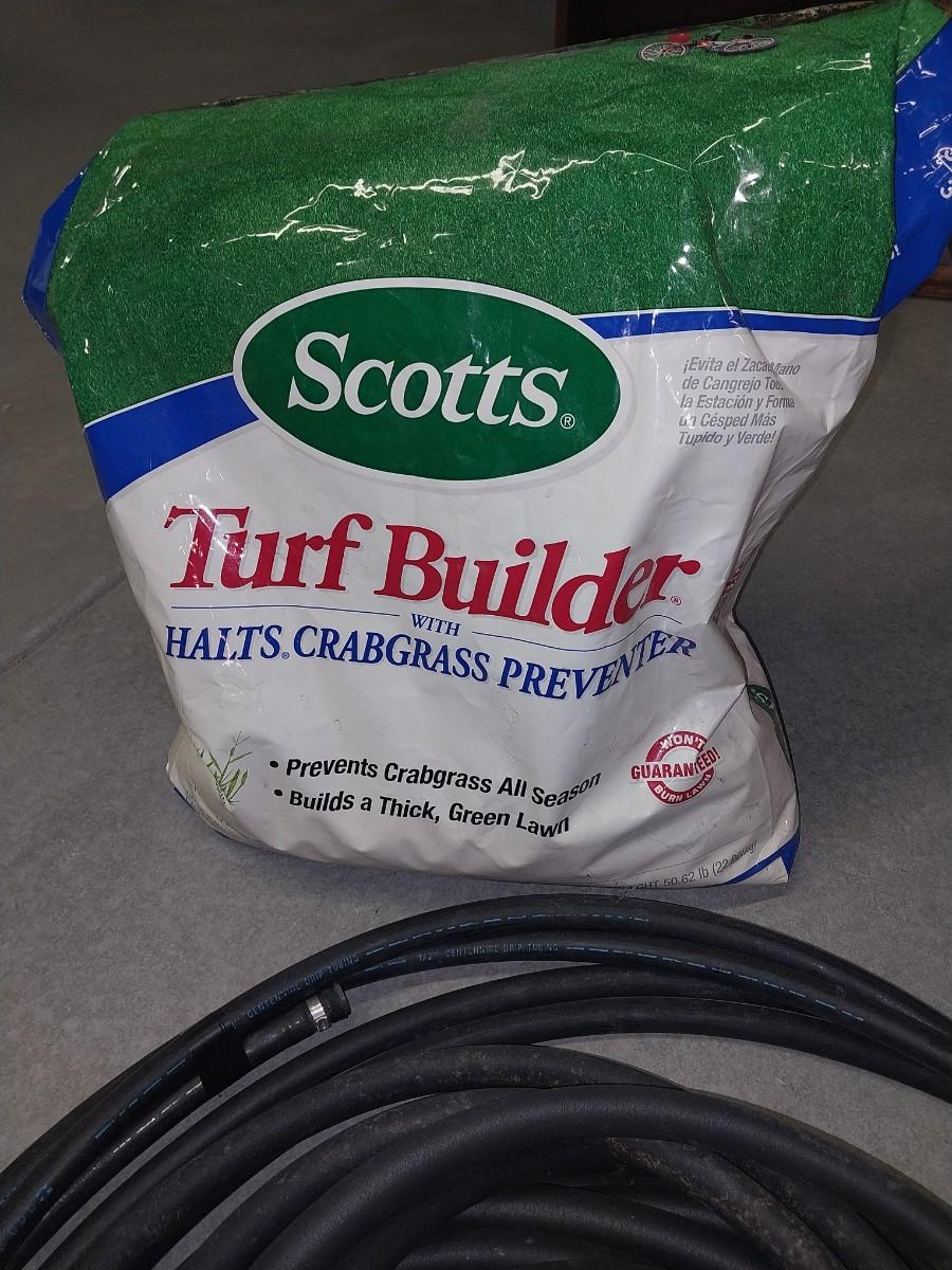 SOAKER HOSE-BUNGEE CORDS AND SCOTTS TURF BUILDER