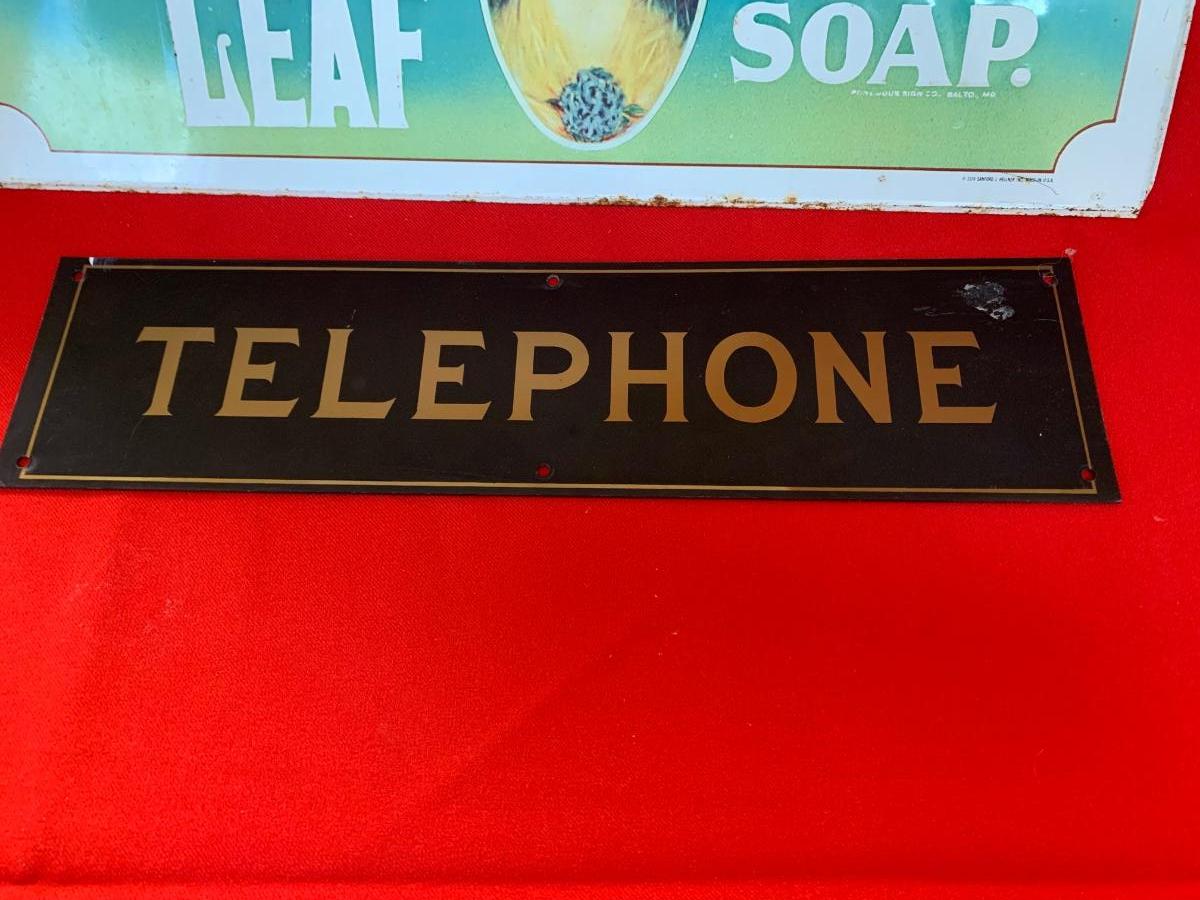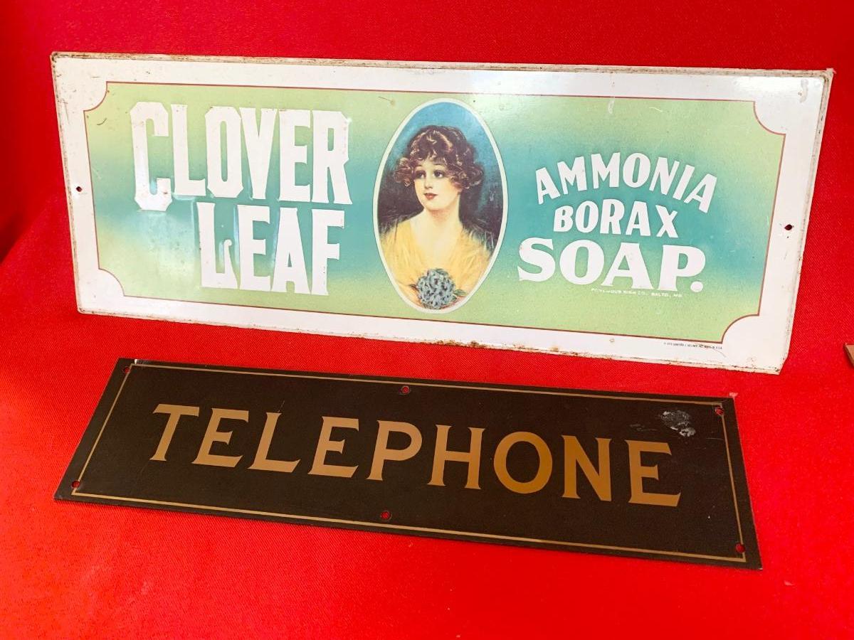 Vintage Clover Leaf Soap Sign + Telephone Sign