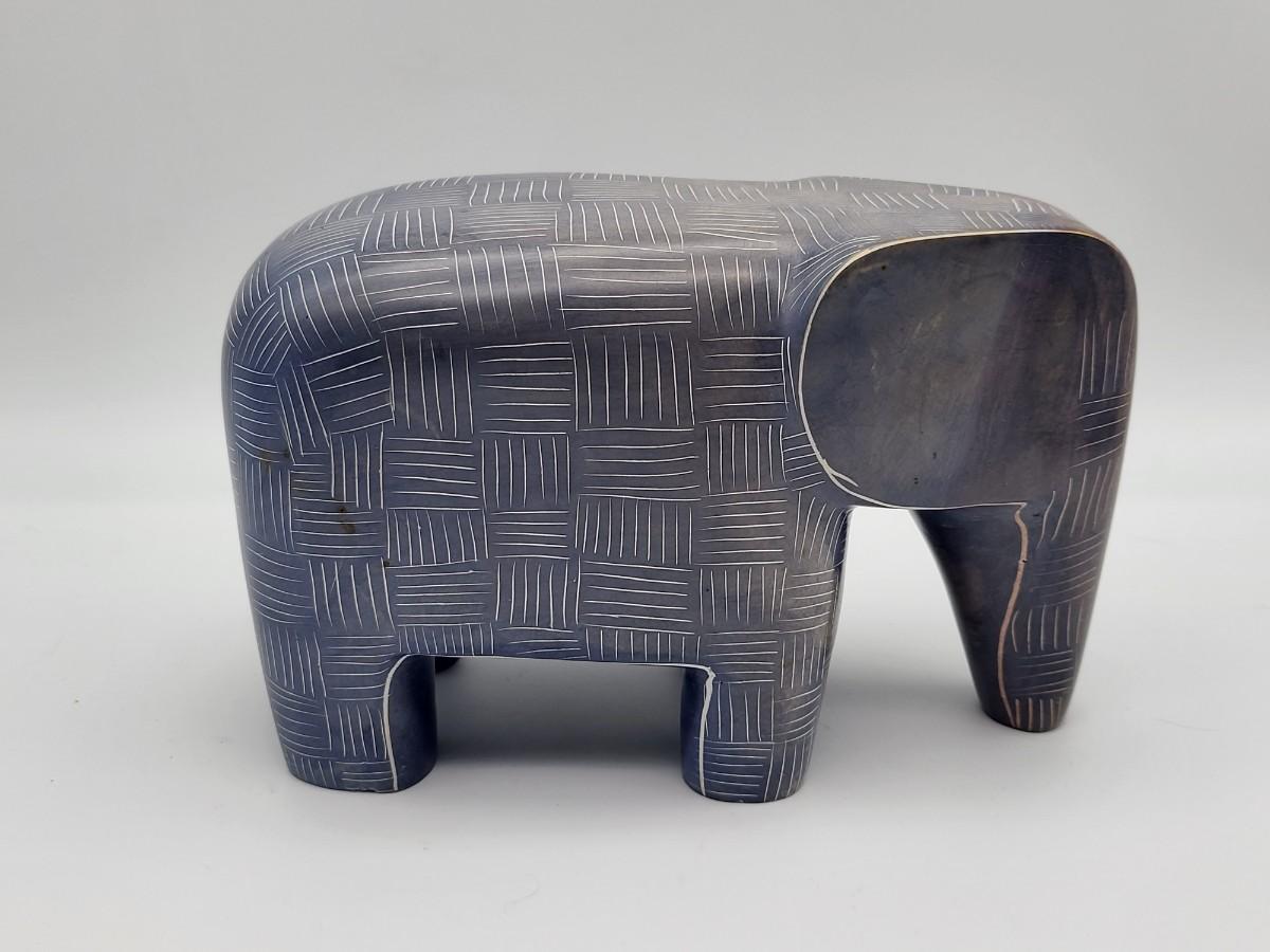 This is a lovely carved soapstone elephant that is 8 inches long.