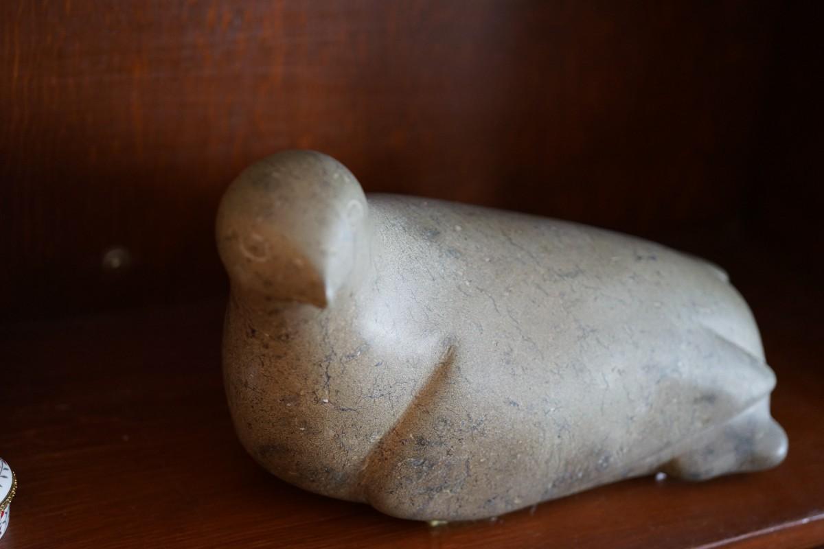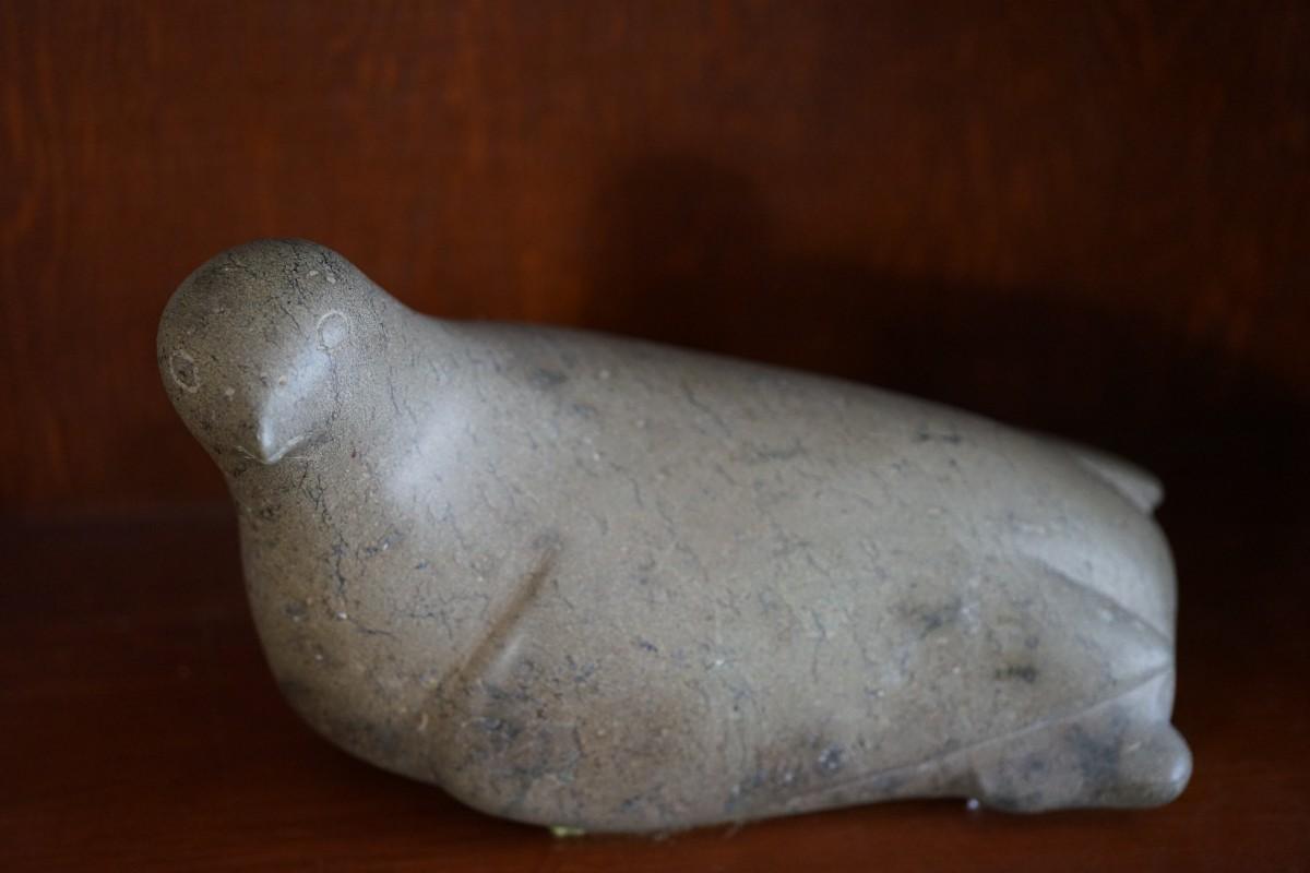 SOAPSTONE INUIT CARVING 12" SEAL SIGNED FROM CAPE DORSET