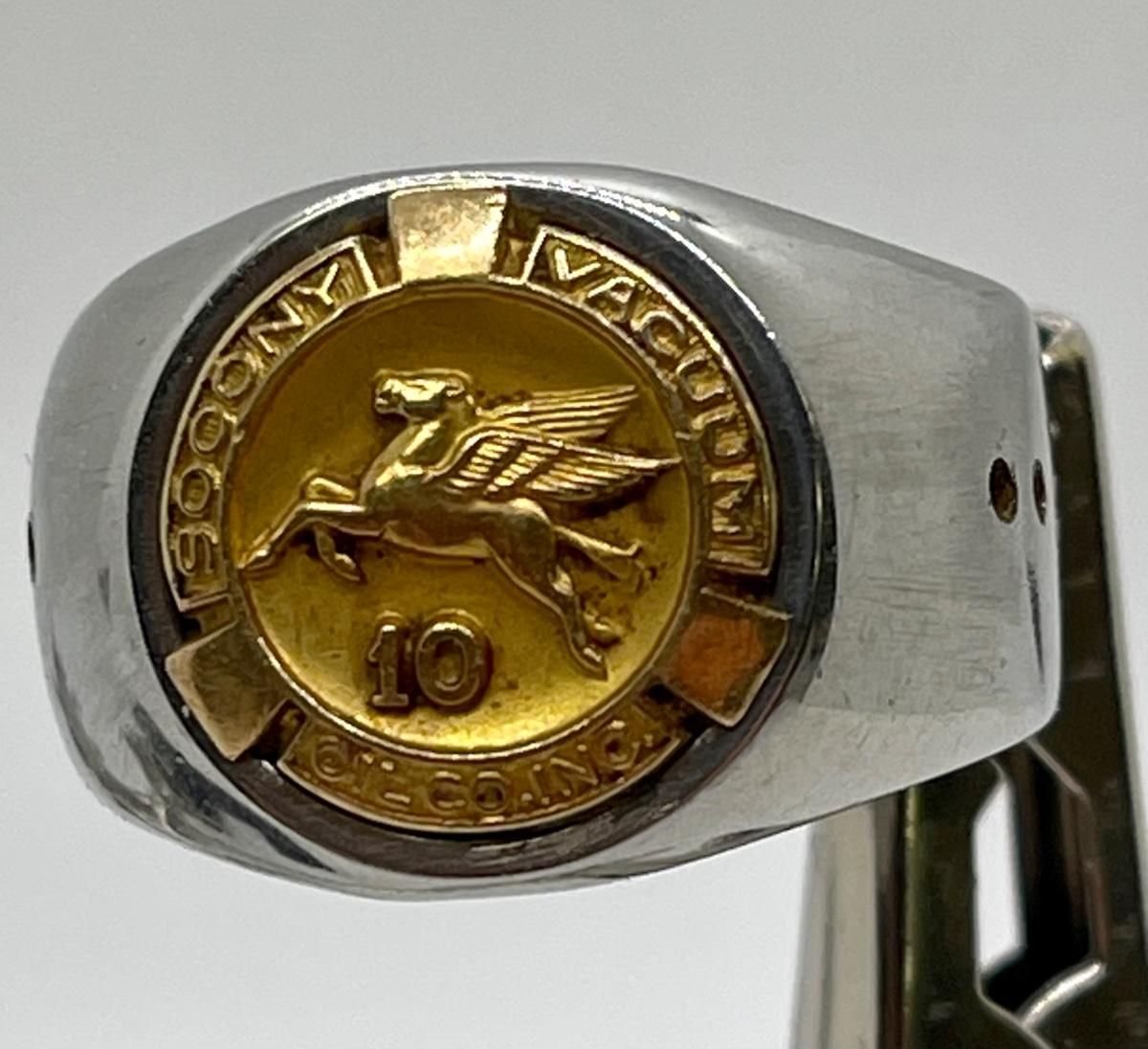 Socony Vacuum Oil Co. 10 year Service Award 10k Pin Made into Men's Ring