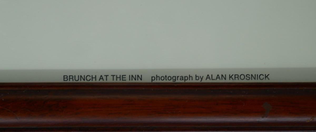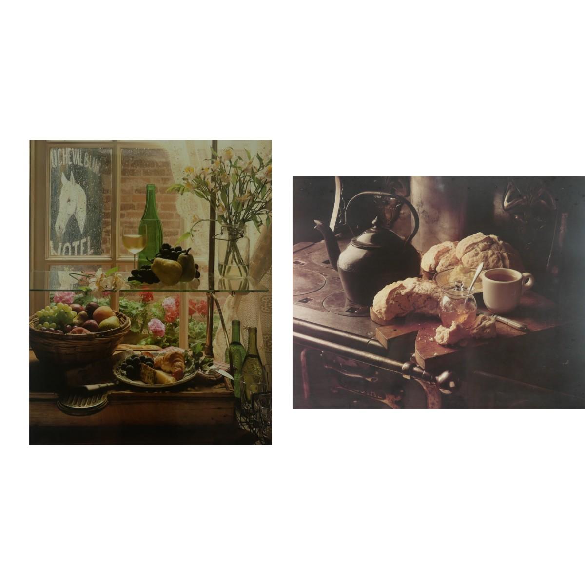 "Soda Bread and Jelly" and "Brunch at the Inn" framed lithographs, photographs by Alan Krosnick. Art is in excellent condition, frames have wear. Each art measures 19.5" x 15", total frames measure 25.5" x 19.5". (A30)