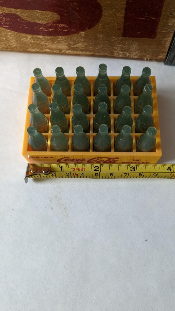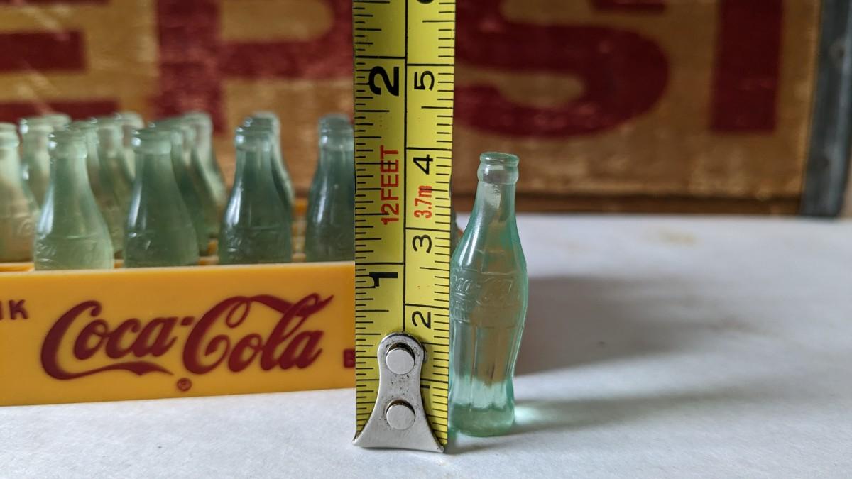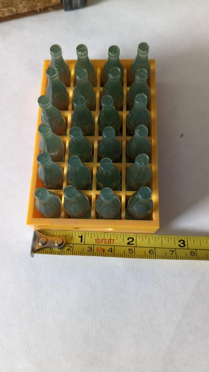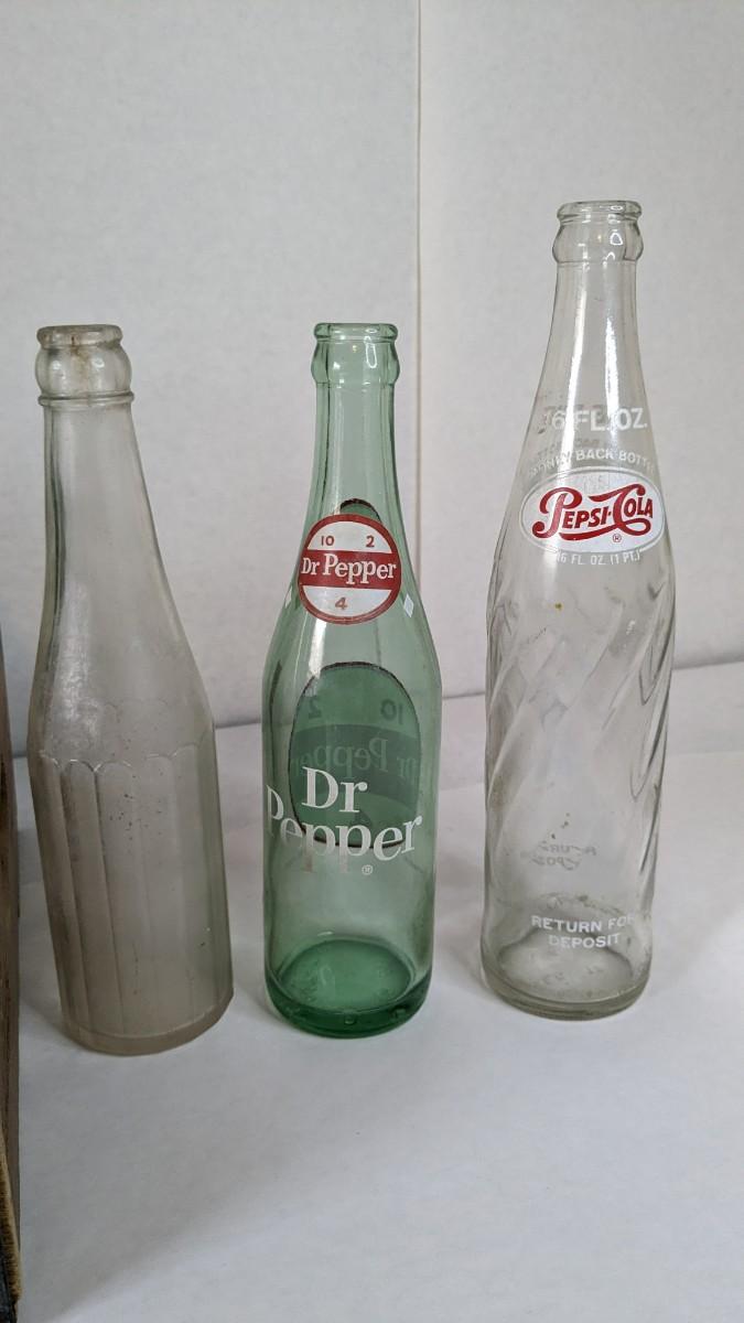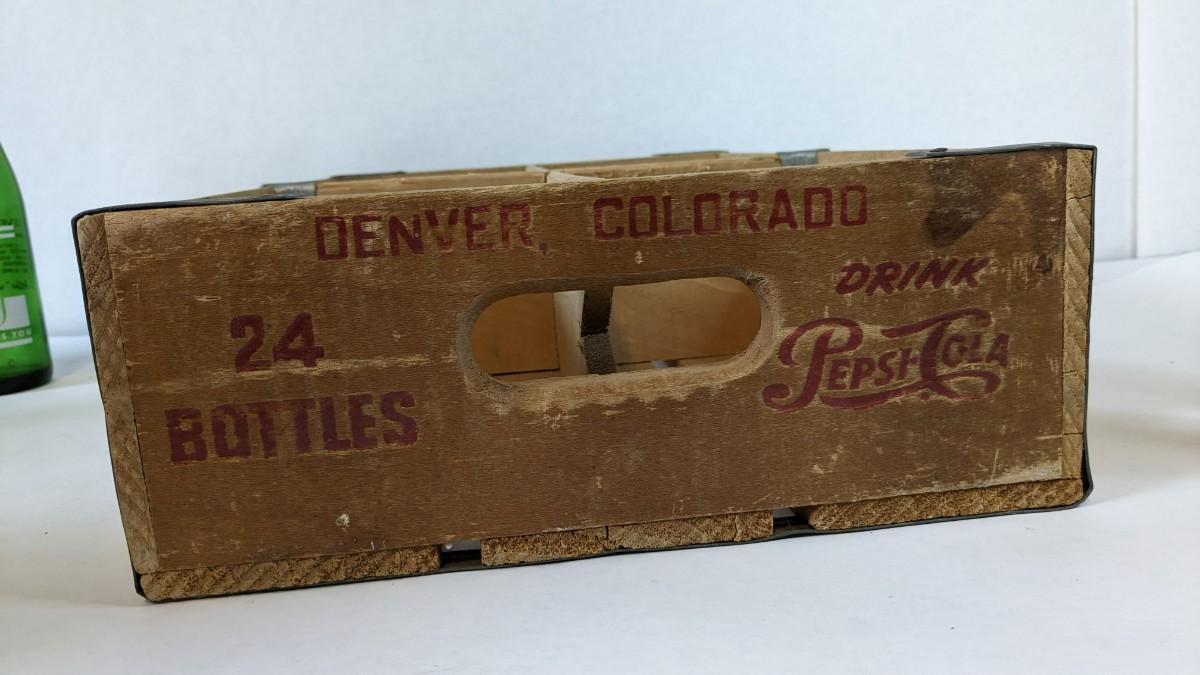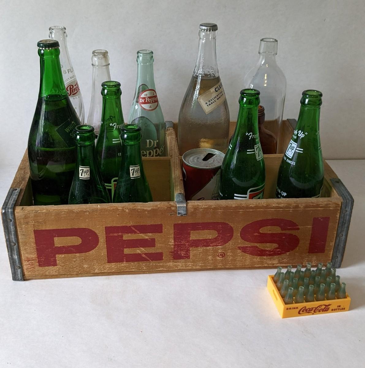 a great little variety of old glass soda bottles, 2 of which are still full! Also includes Denver specific Duraglas Pepsi wood crate that is in EXCELLENT condition, Coke cans, an adorable miniature plastic Coke crate with mini Coke bottles and a couple of unmarked liquor bottles. Special handling fees apply.