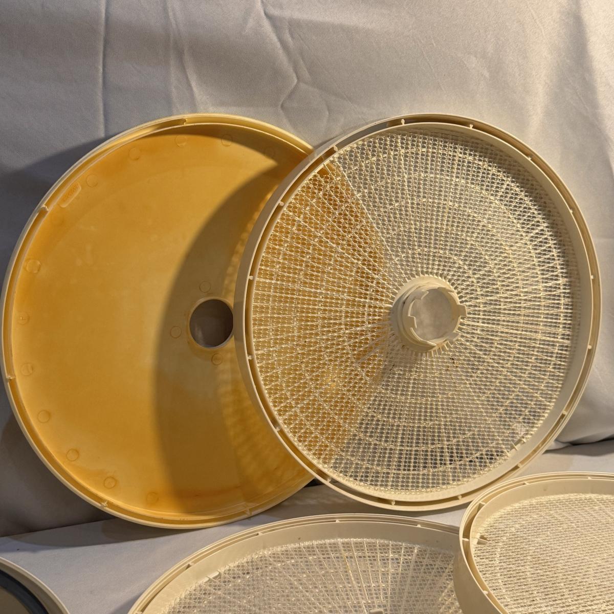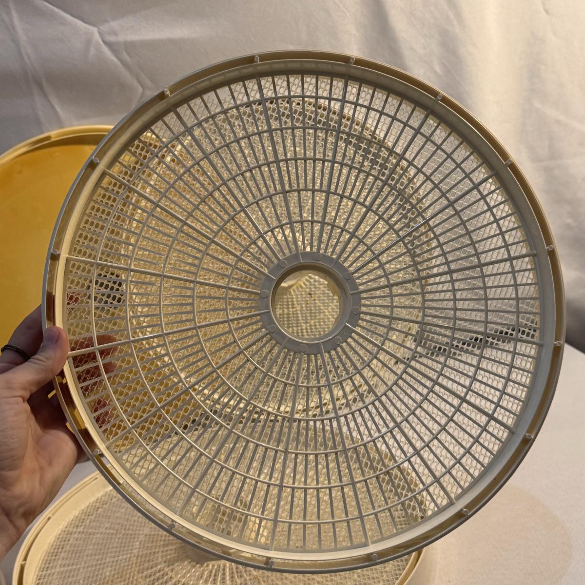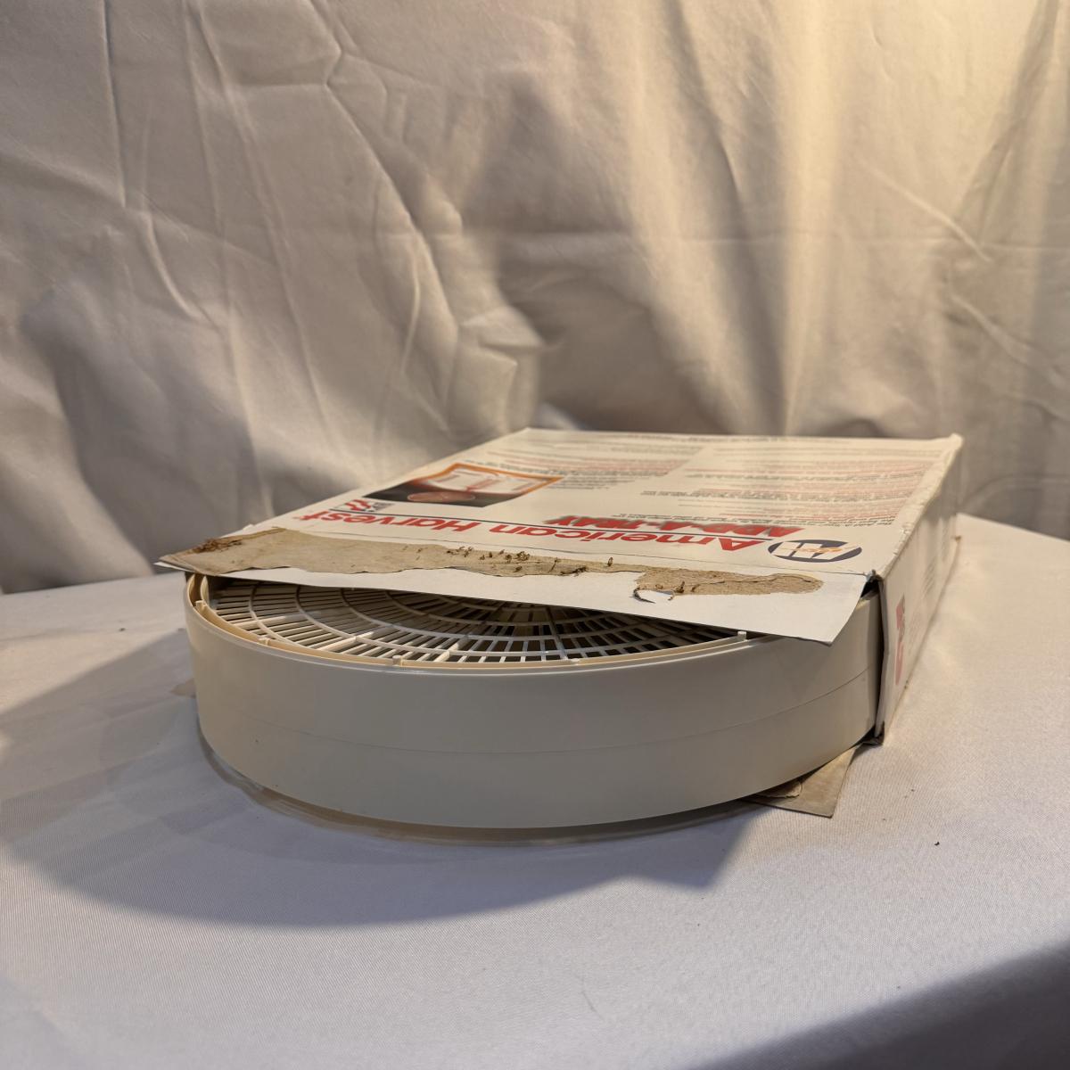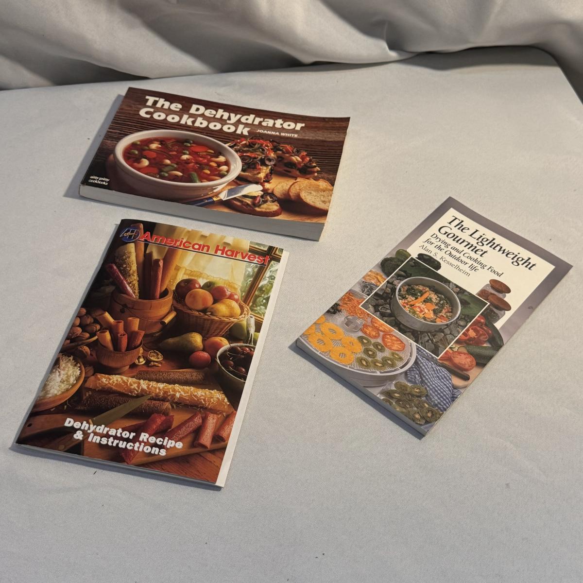 This lot includes one Sodastream, one American Harvest snack master dehydrator, two additional trays to add to the dehydrator, and three books filled with dehydrating recipes. The dehydrator measures 13.5” x 8”H. It appeared to power on when plugged in, but we did not test it with food. Soda Stream was not able to be tested as there was a not a carbonation canister with it. Shipping available.