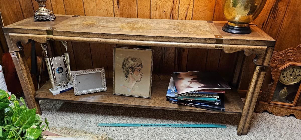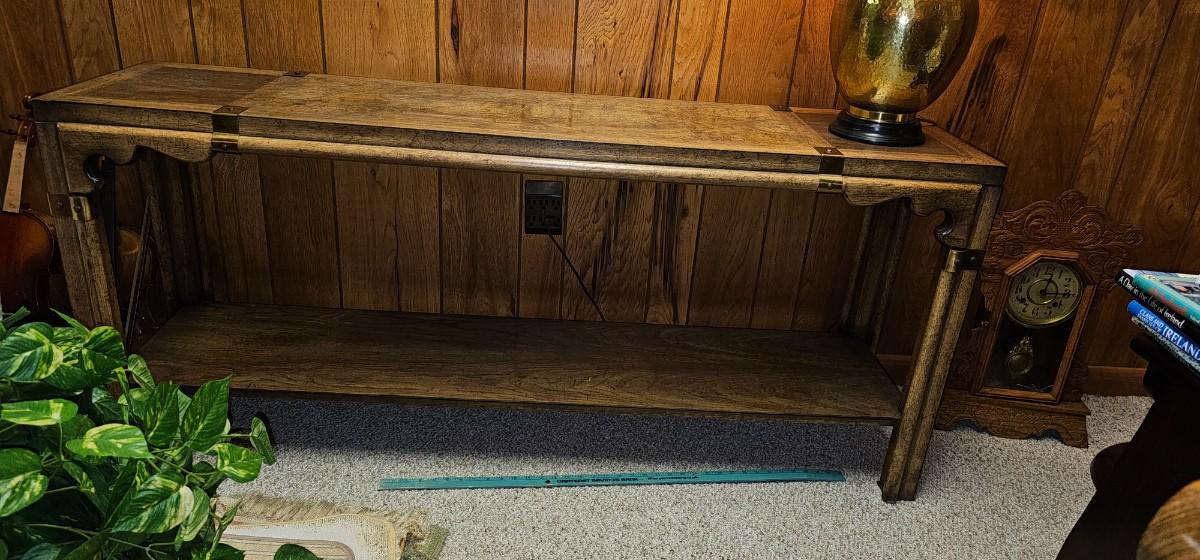 Sofa back Table wood with brass accents 60" long x 27" high x 15" wide
