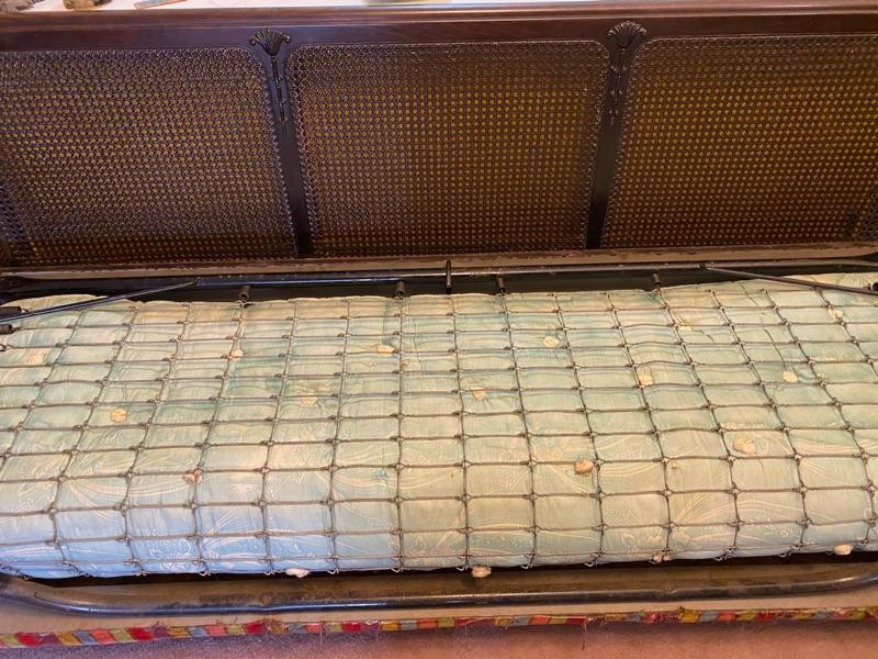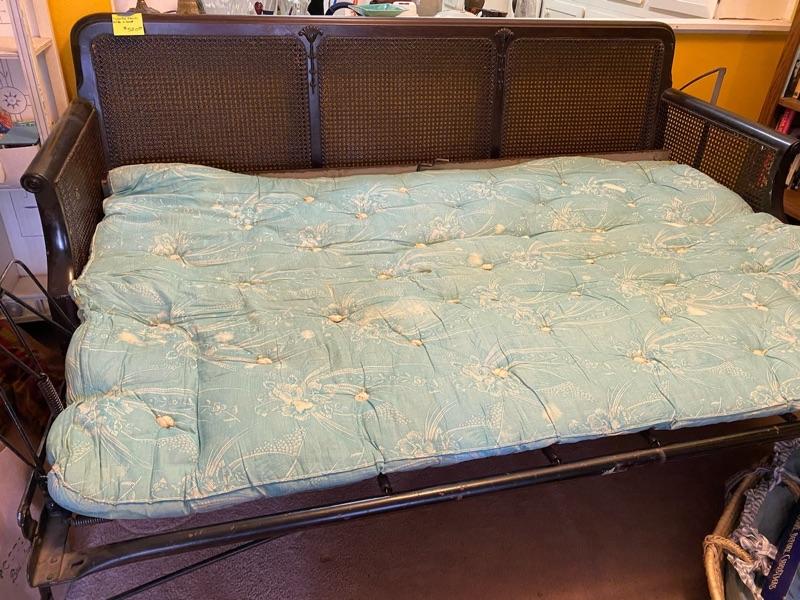This is a roller sleeper - Bottom rolls and bed folds out - antique 79x29.5x37