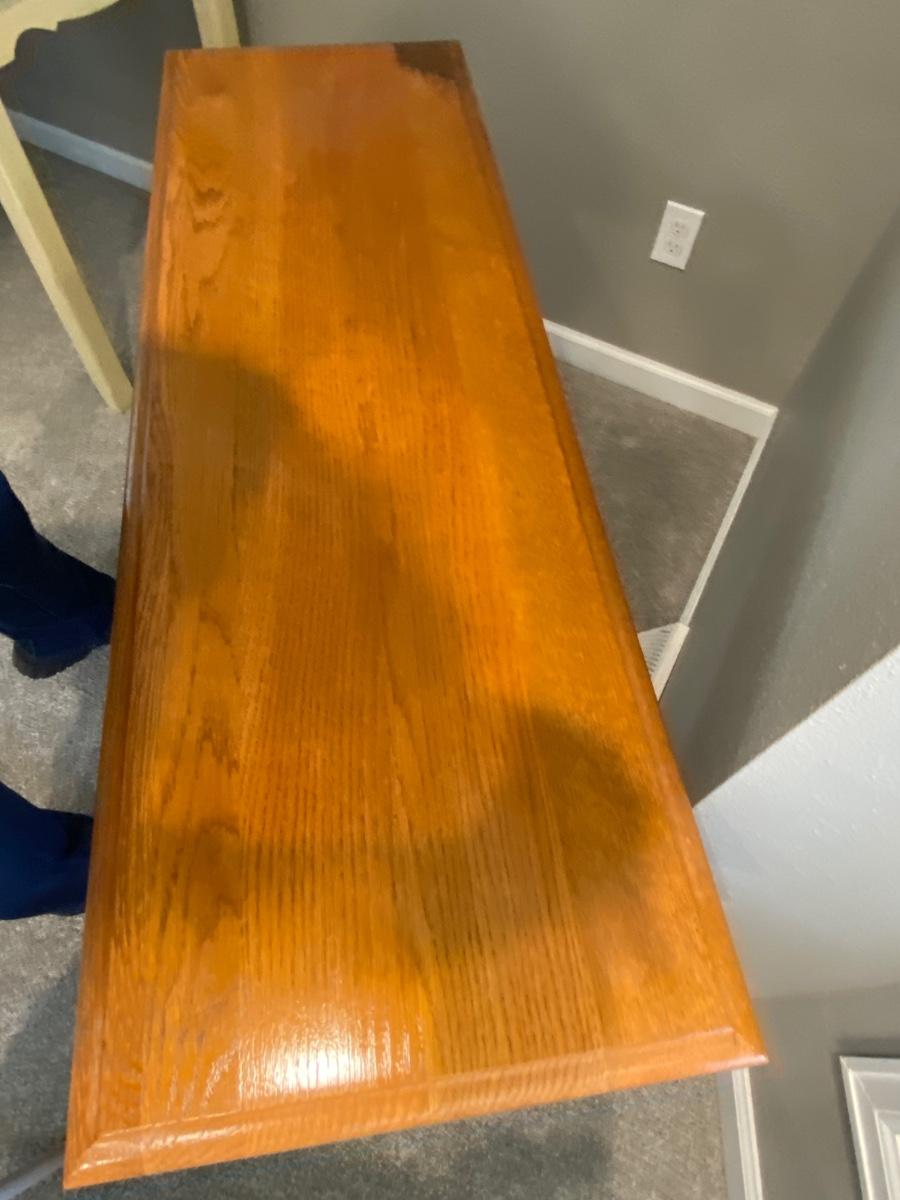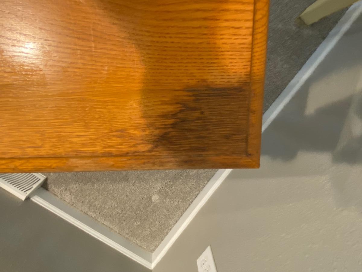 SOME DAMAGE TO CORNER OF TABLE TOP (SEE PIC)