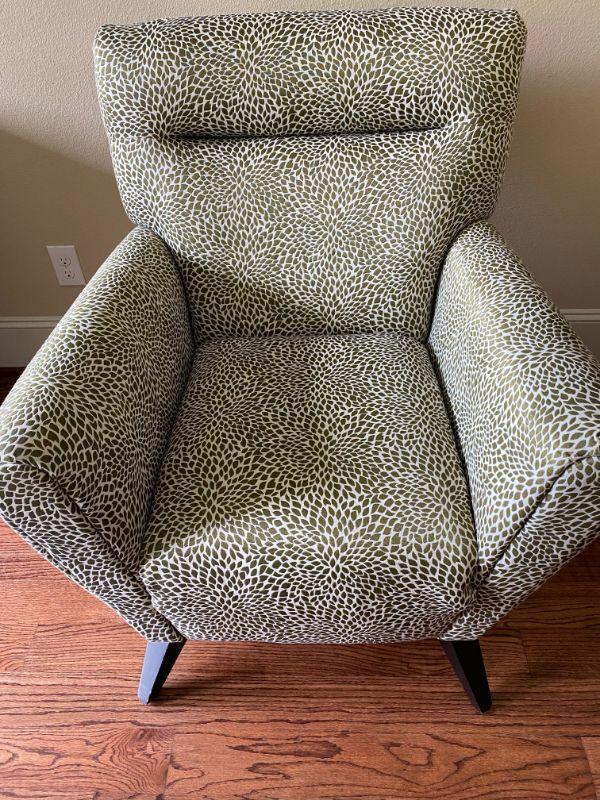 Fab condition not to mention... that dark green and white leafy pattern. Spruce up any room with this extra-large chair.