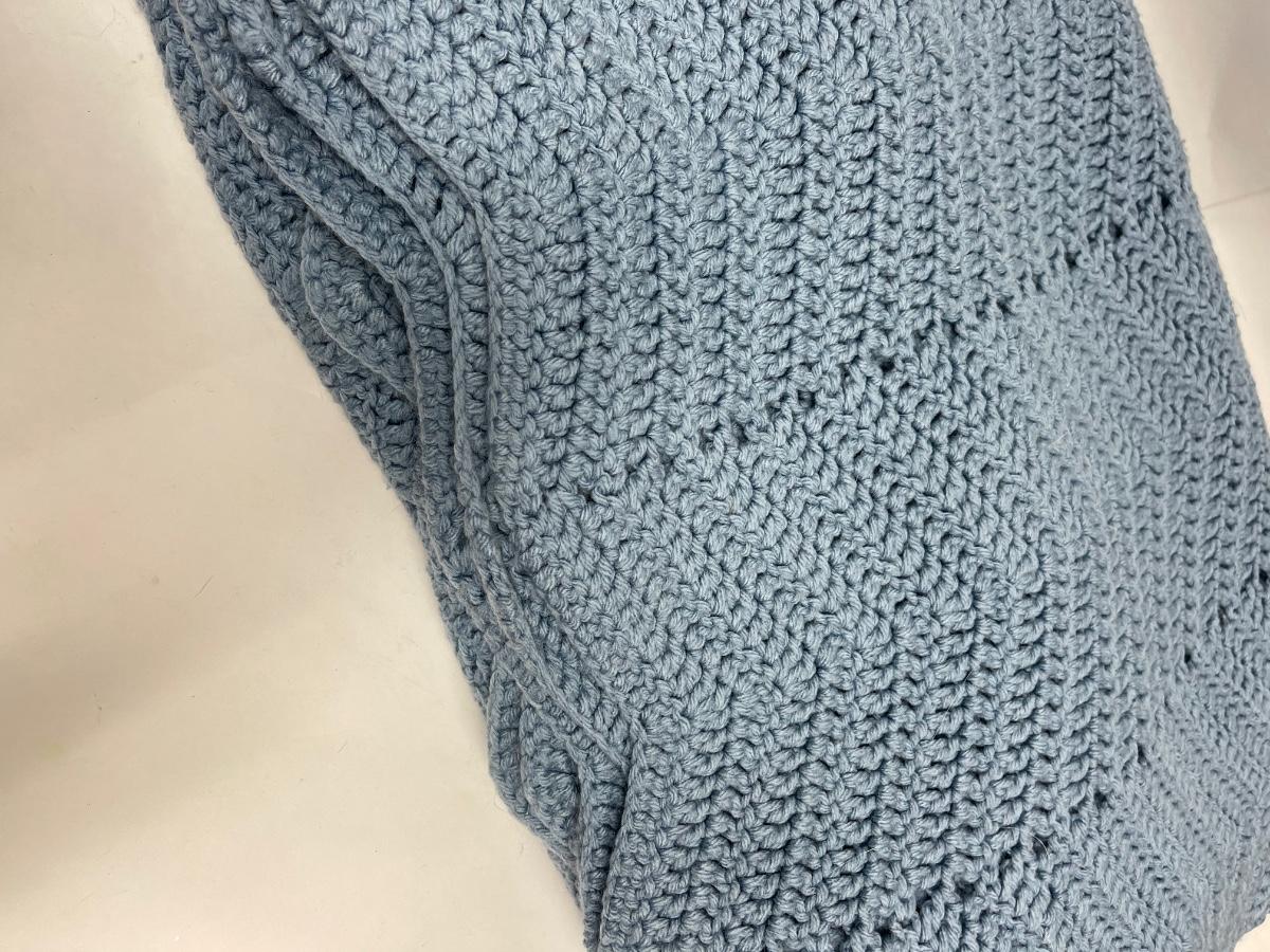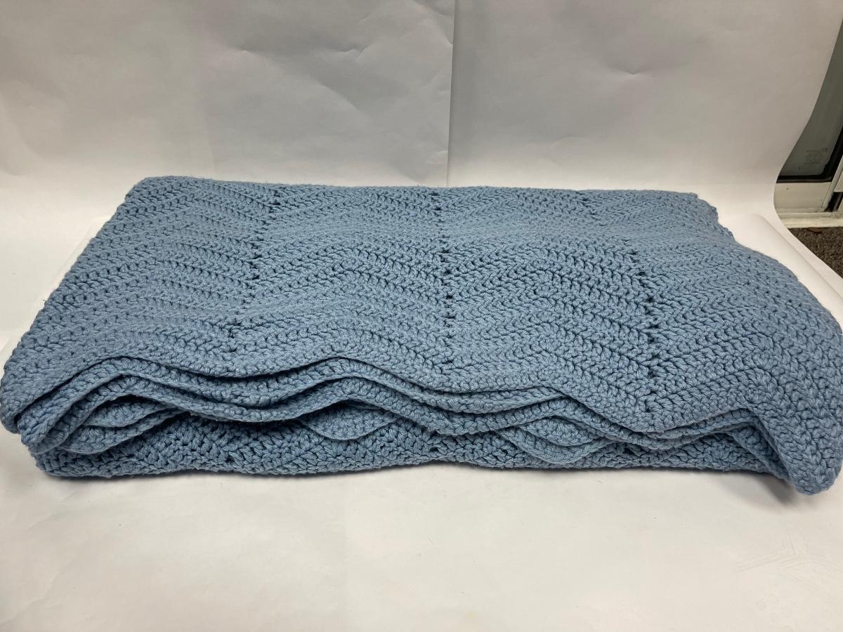 Soft Blue Afghan Crochet Knit Blanket Throw Zig Zag Edge