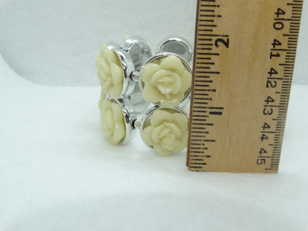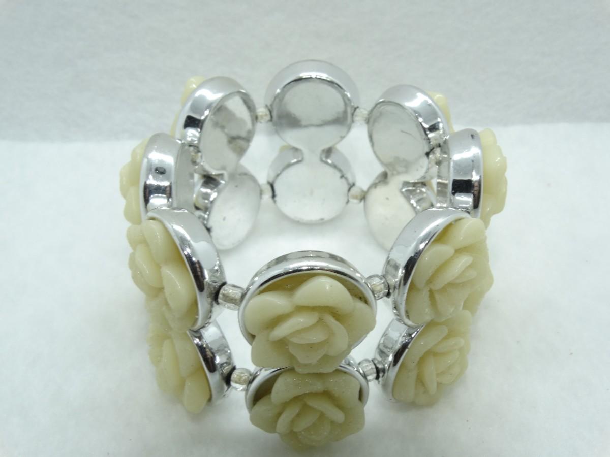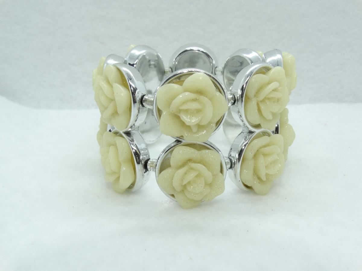 Soft Cream  Rose Stretch Bracelet - Silver Tone