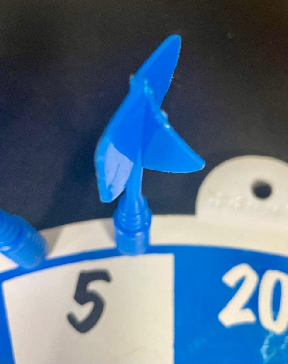 Good used condition, one dart is missing a part of the tail fin. See photos for details.