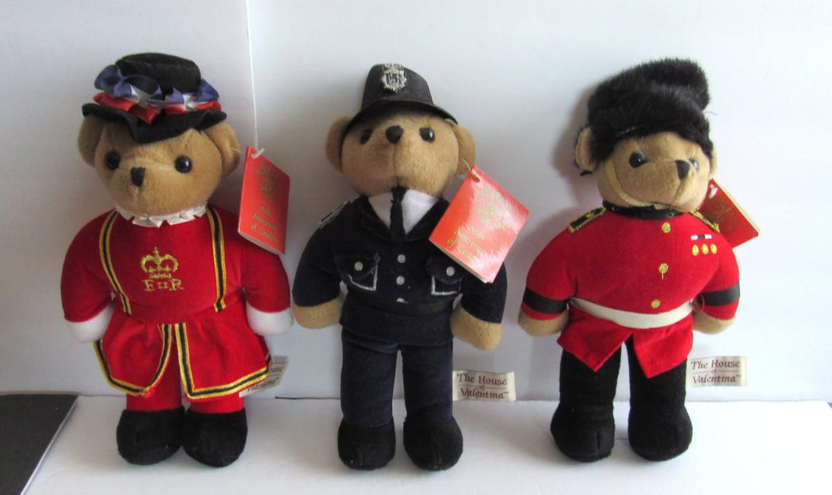 Lot 345: Softy Souvenirs of London, 3 Plush Bear Guards