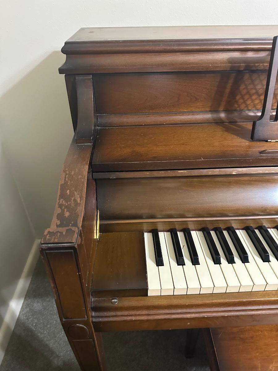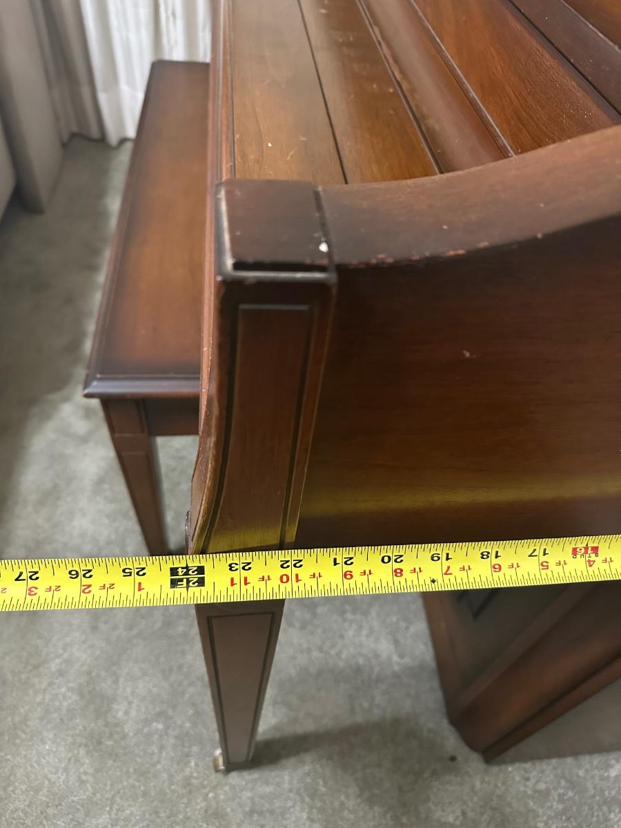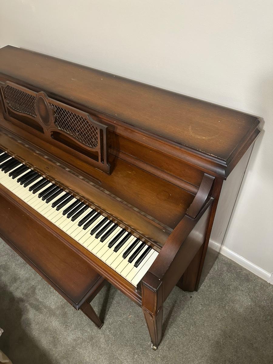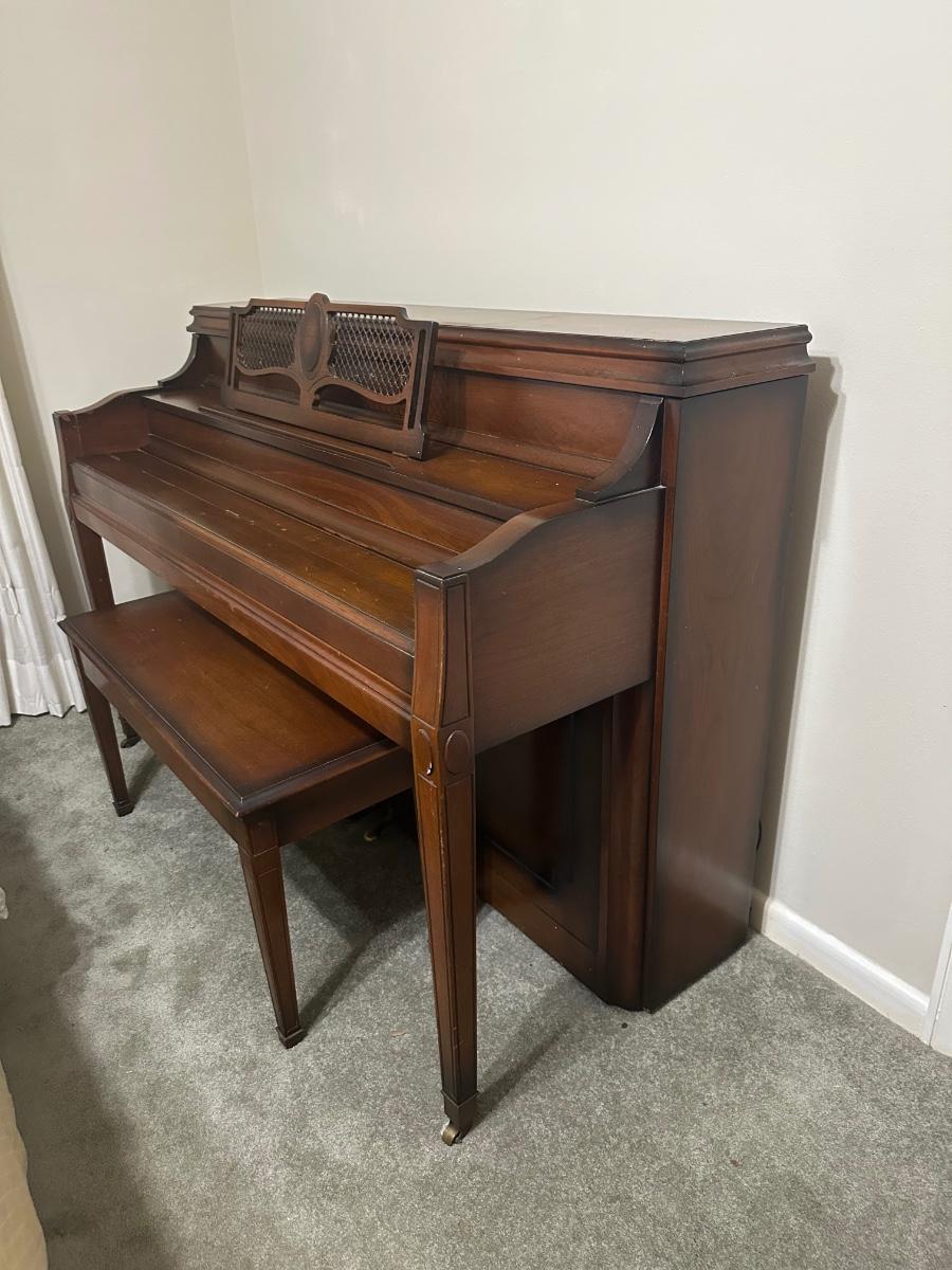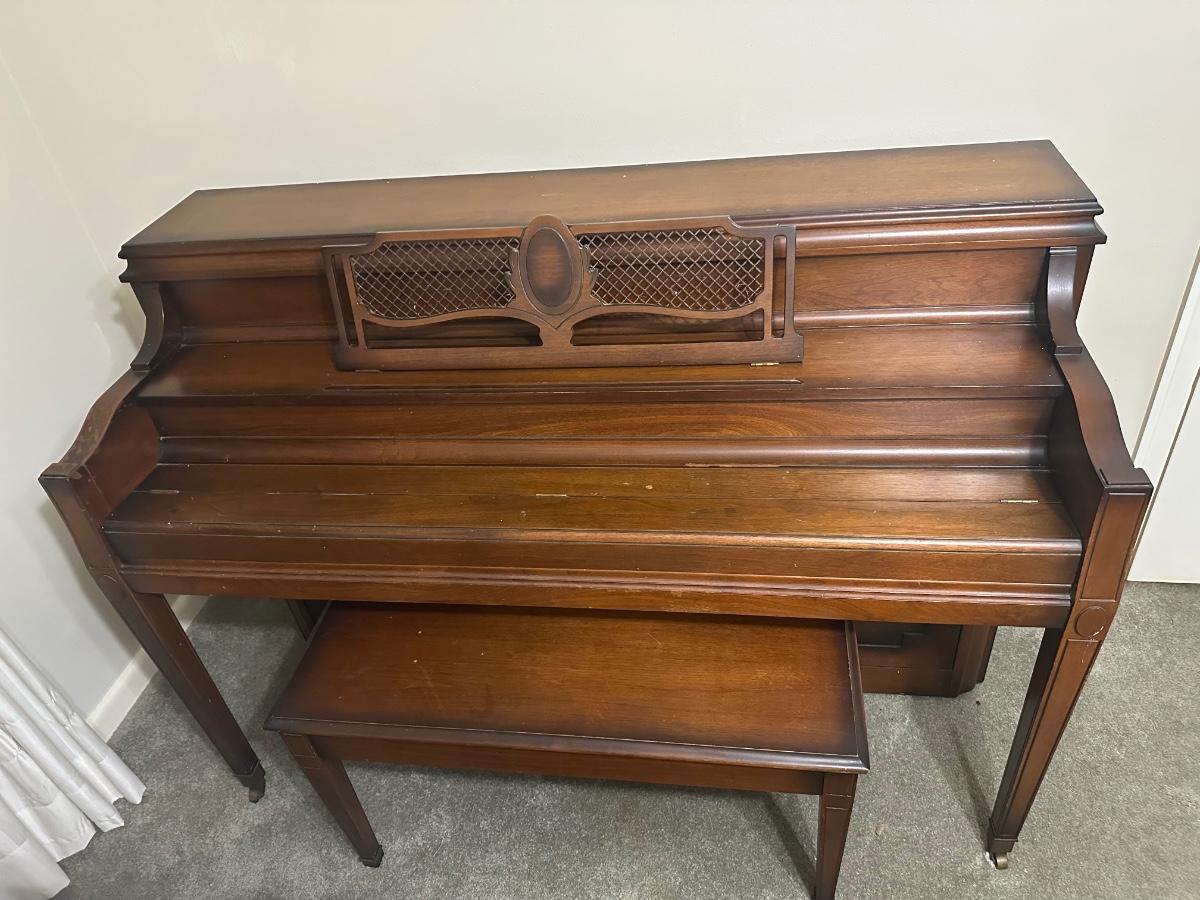 Well-made Sohmer & Co. console piano in a traditional walnut finish. Includes matching bench.