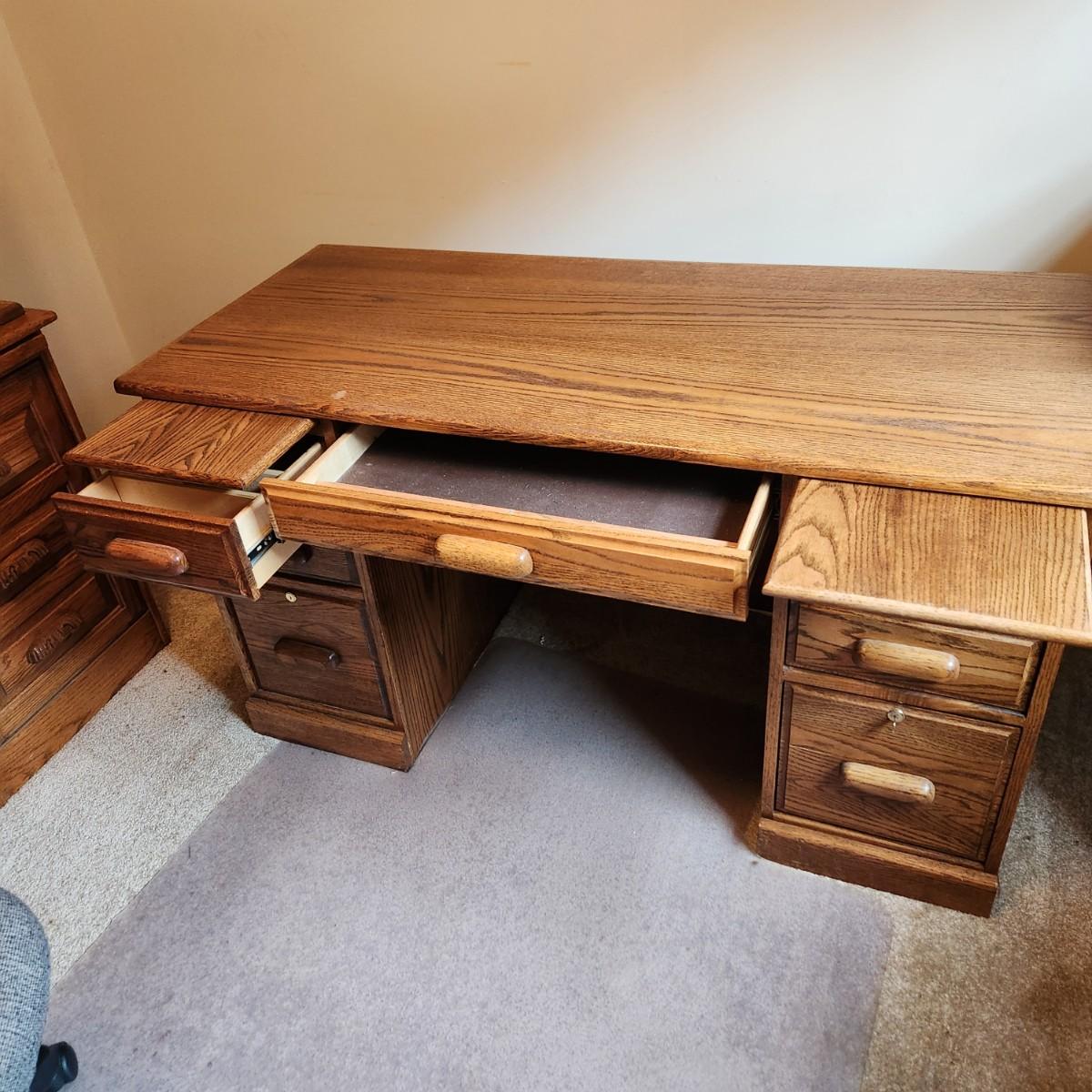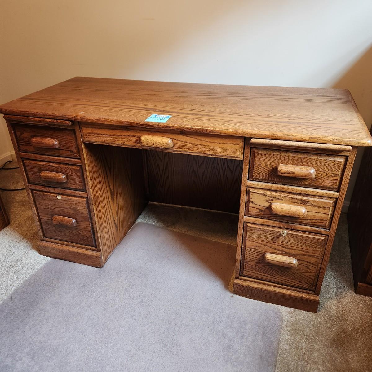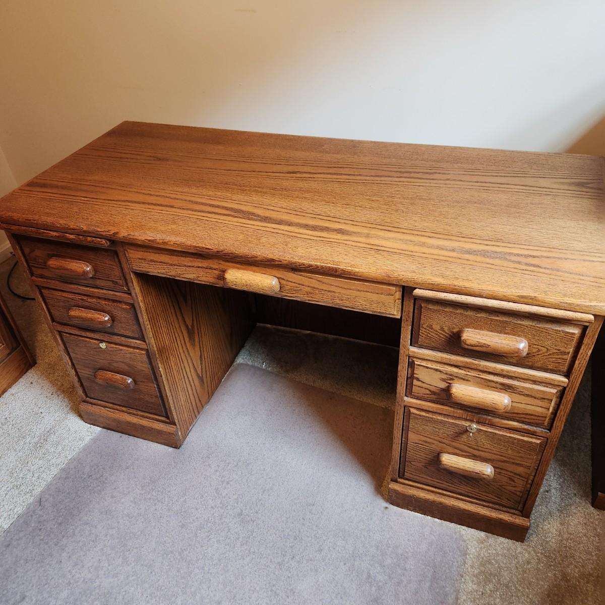 Soild Oak Wood Office Desk w Key 54x24x29 kneehole 24"