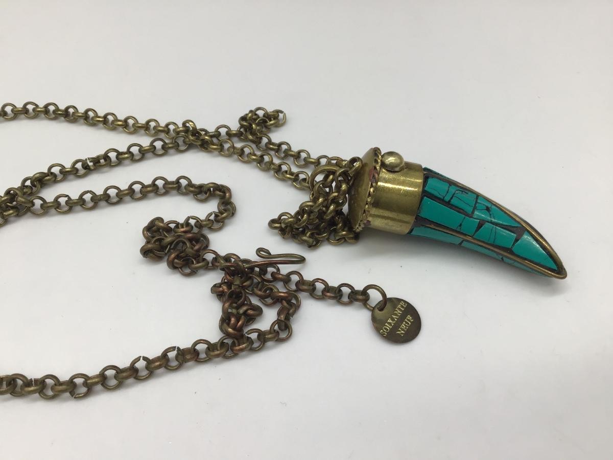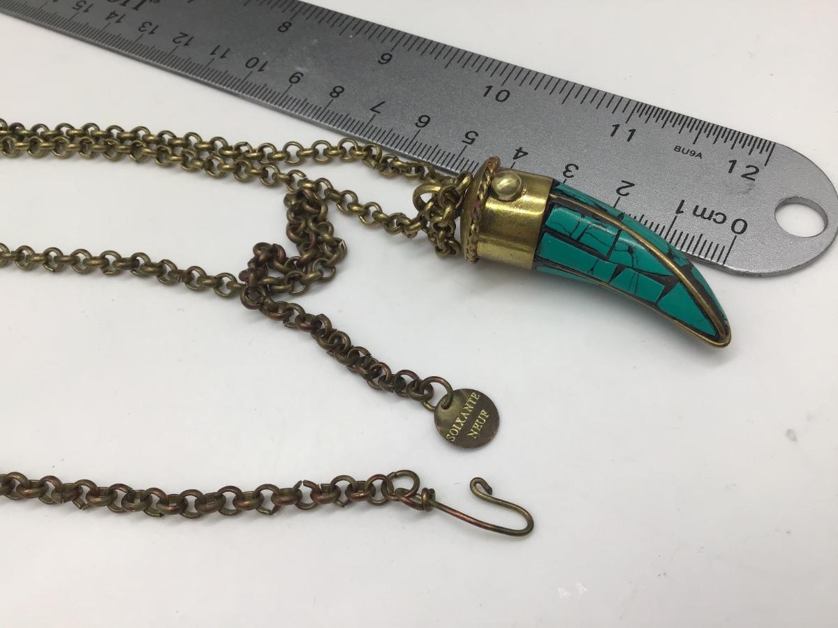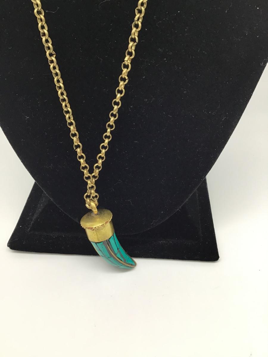 Soixante Neuf Horn Pendant Necklace Turquoise Inlay GoldTone
