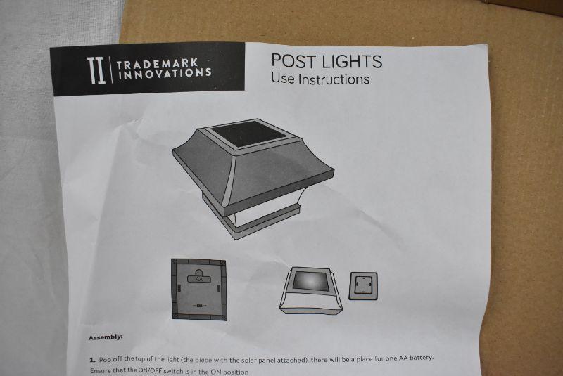 Solar LED Garden Pathway Post Cap Lights - Set of 4 by Trademark Innovations, $27 Retail - New