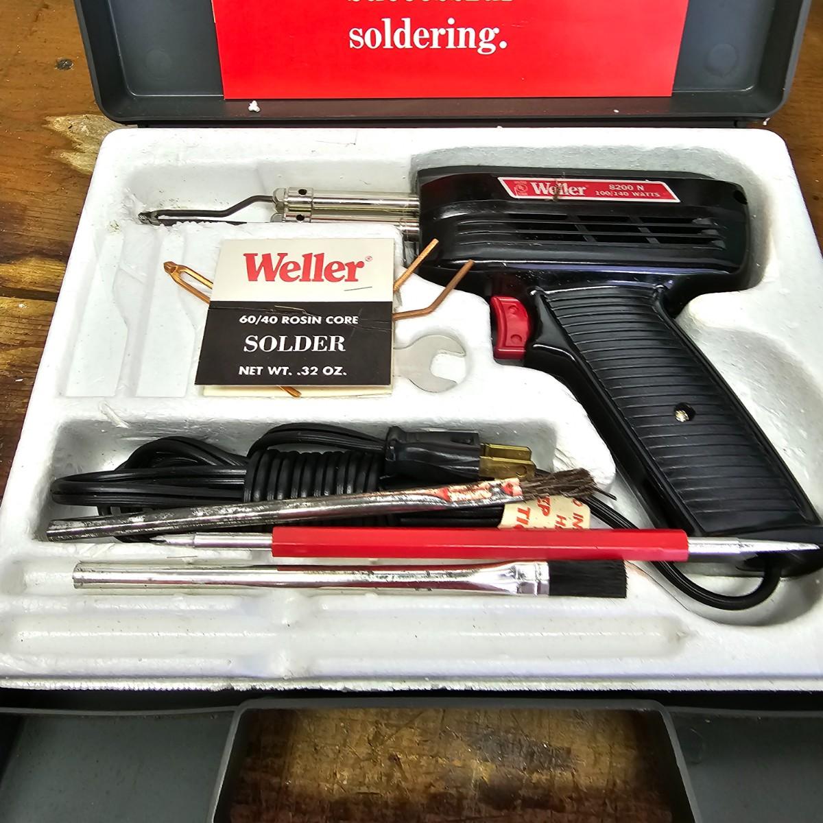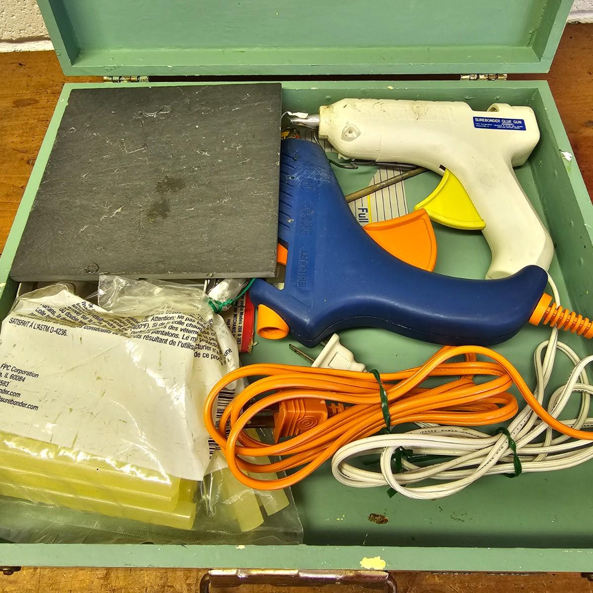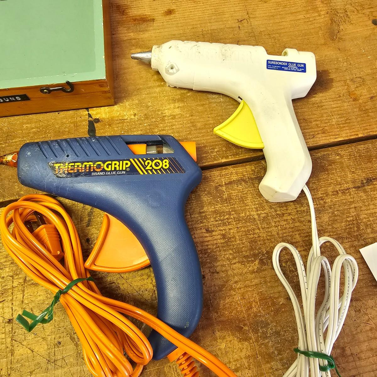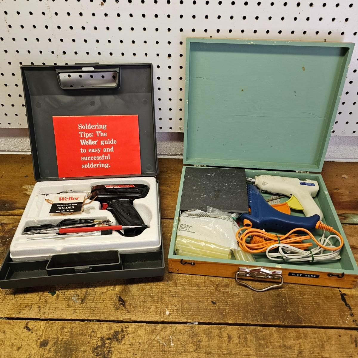 One Weller 8200N soldering kit with gun, extra tips, case, tools and brushes. Also one ThermoGrip 208 glue gun and a Surebonder glue gun, with extra glue sticks. All items powered on when plugged in. See photos for details. Shipping available.