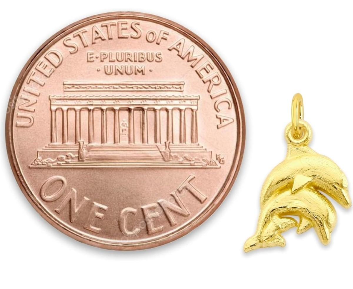 Solid 10k Gold Dolphin Microcharm, Mini Cute Beach Charm with Clasp