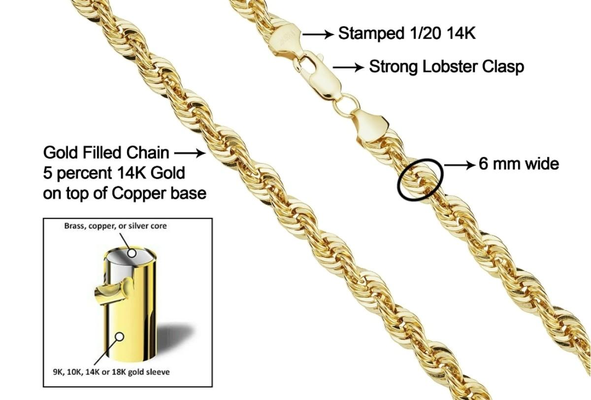 Solid 14k Yellow Gold Filled Rope Chain Necklace (6 mm, 18 inch)
