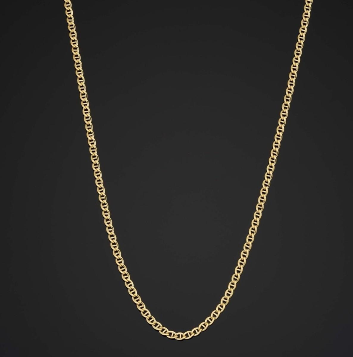 Solid 14k Yellow Gold Filled 2.55 mm Mariner Link Chain Necklace for Men and Women