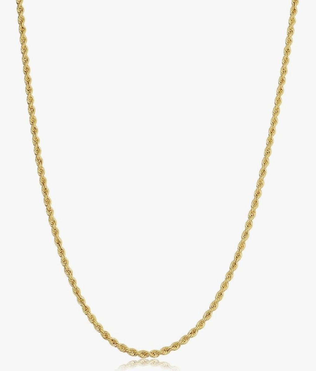 Solid 14k Yellow Gold Filled Rope Chain Necklace
