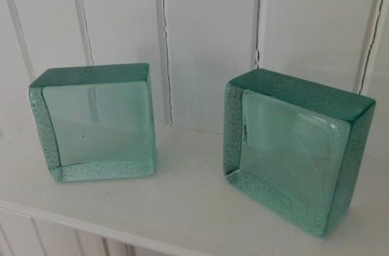 Solid Art Glass Book Ends 5" x 5" very nice color