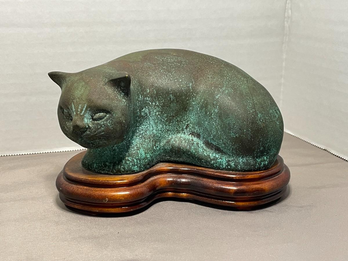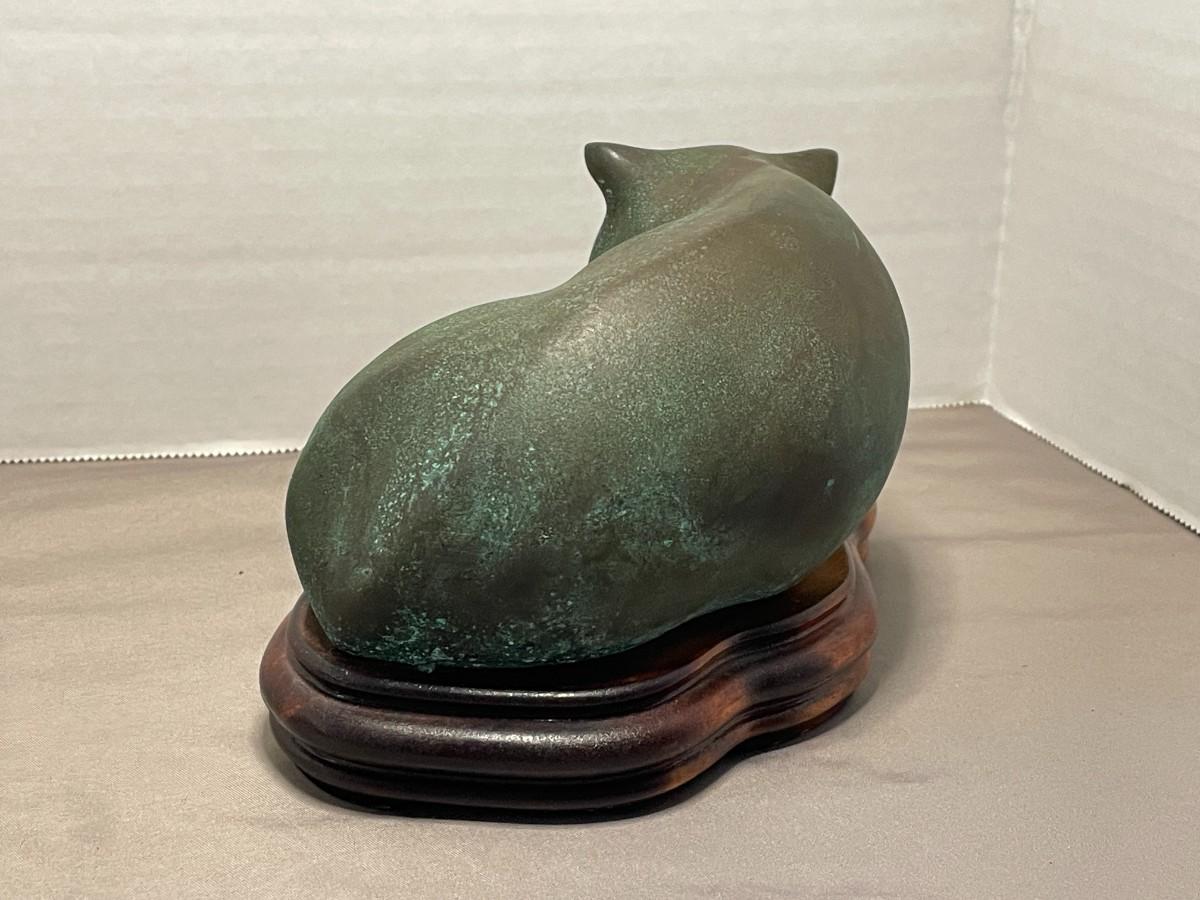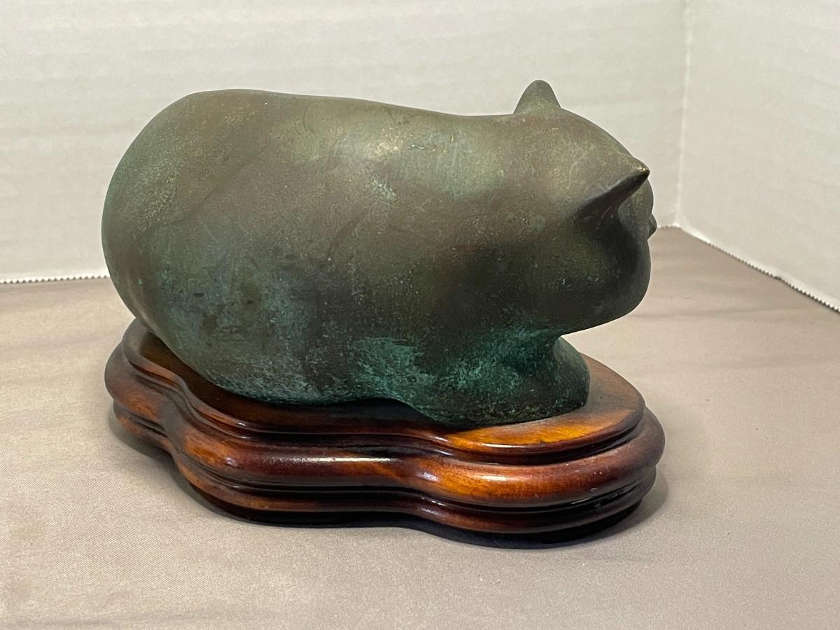 Funny how a cat can give you an attitude look even when it's made of solid brass! This kitty is attached to a wood base that is about 6.25 inches by 3.75 inches and is about 4.5 inches tall. No issues found.