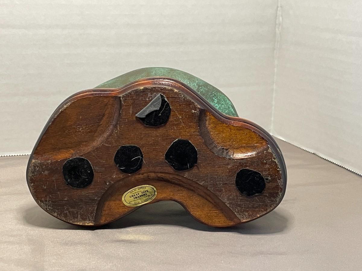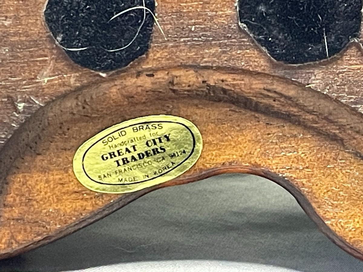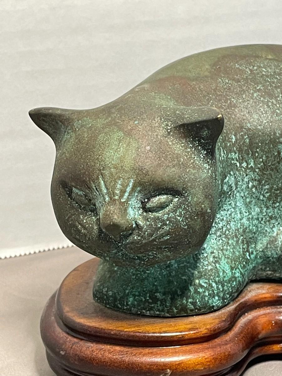 Funny how a cat can give you an attitude look even when it's made of solid brass! This kitty is attached to a wood base that is about 6.25 inches by 3.75 inches and is about 4.5 inches tall. No issues found.