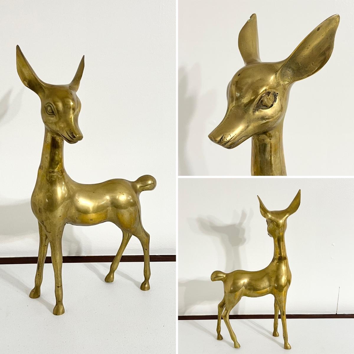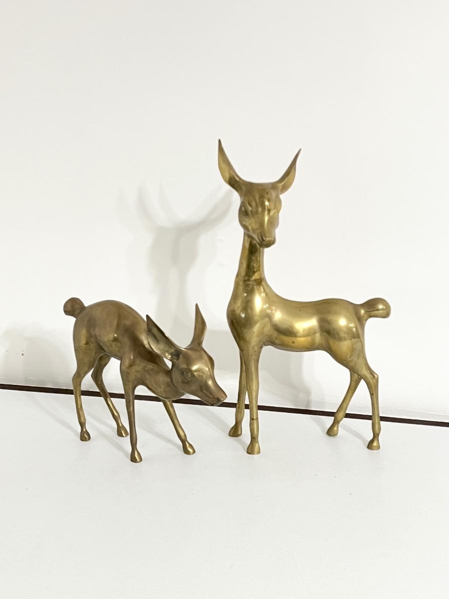 1 deer has minor chip in ear, see photos ~ One = 19” H x 9” W x 3.5” D ~ Other one = 9.5” H x 13” W x 3” D