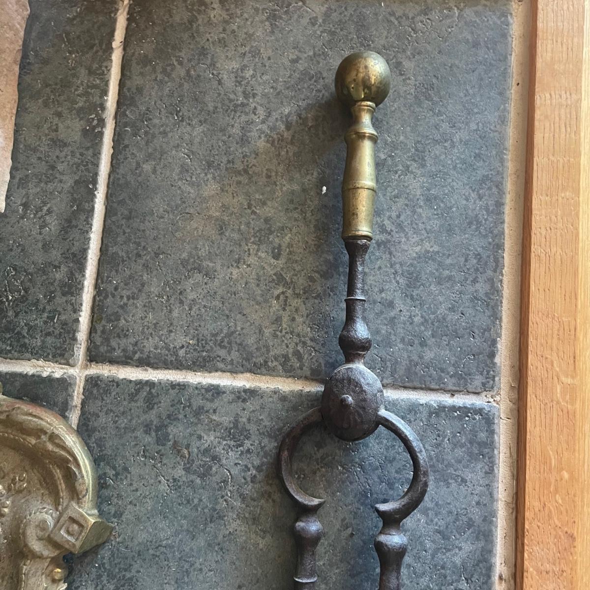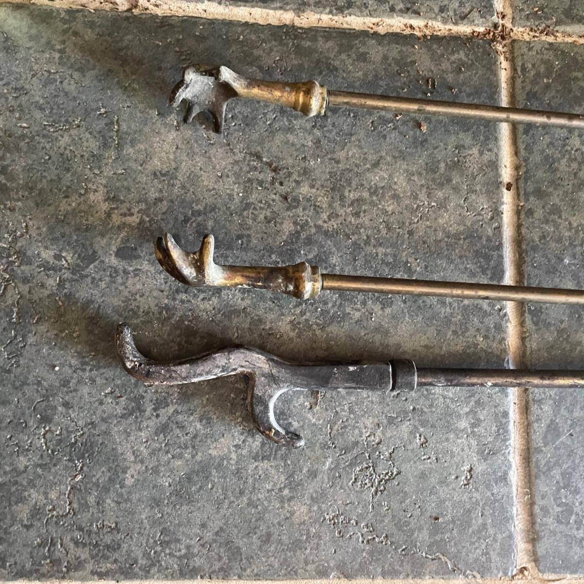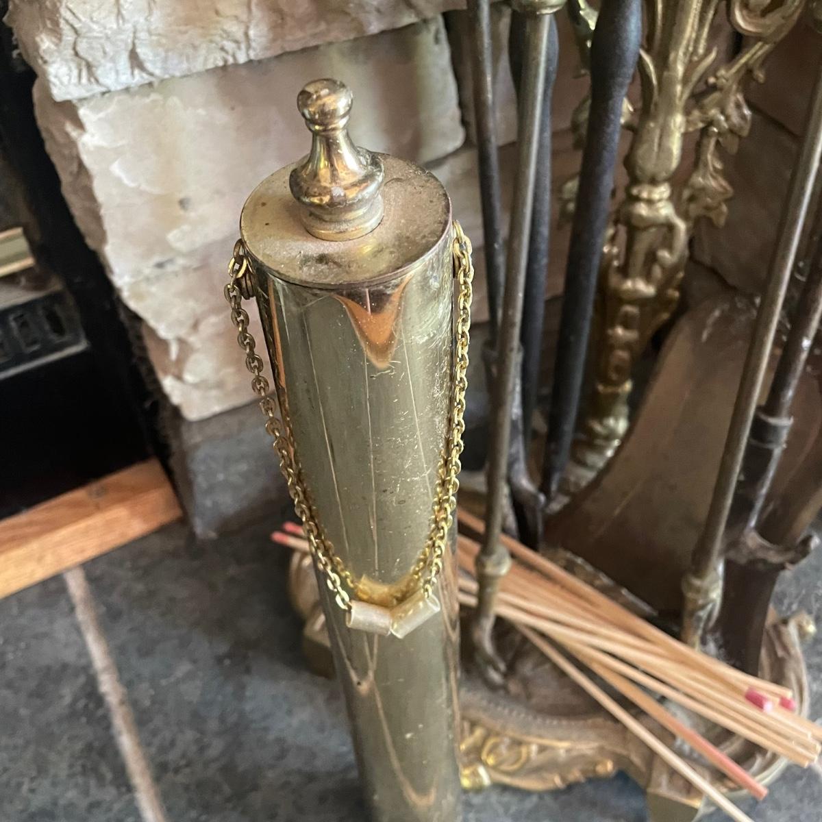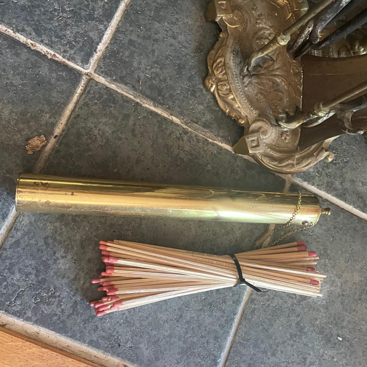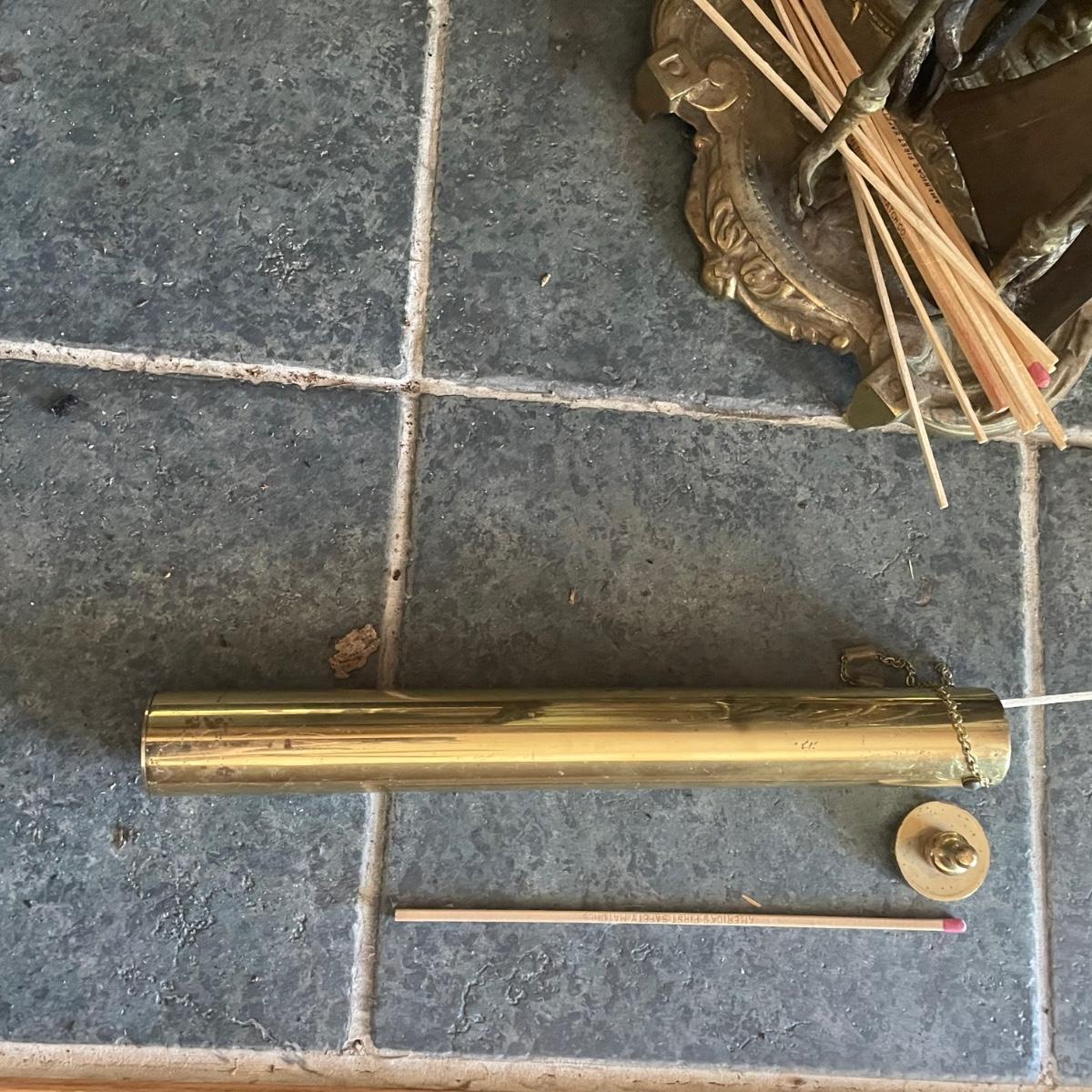 This 5 piece ornate brass set of fireplace tools comes with a stand that measures approximately 9” x 9” x 28”. More fireplace tools included, see images.