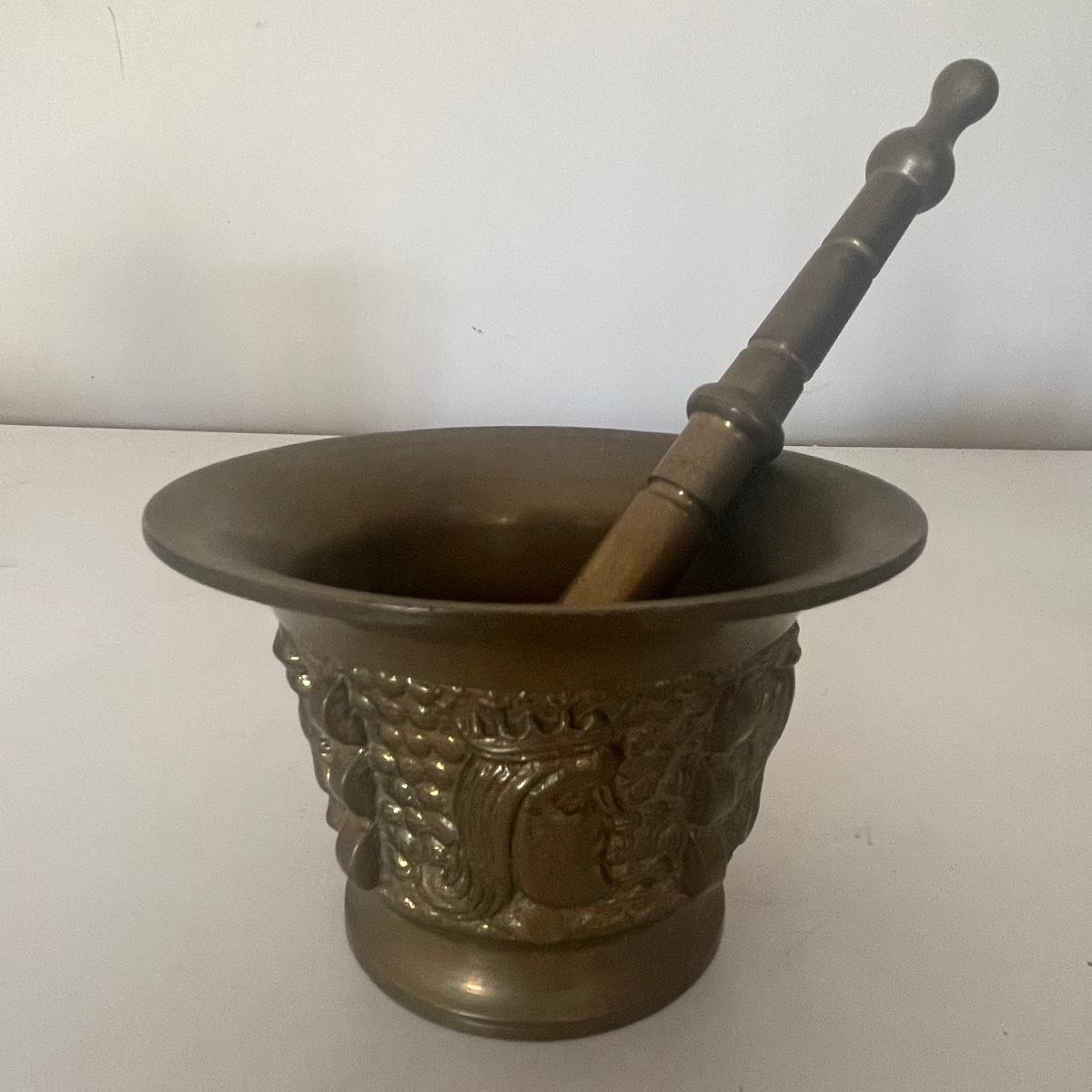 Solid Brass Mortar/Pestle, Goblet & Candlesticks (G-RG)