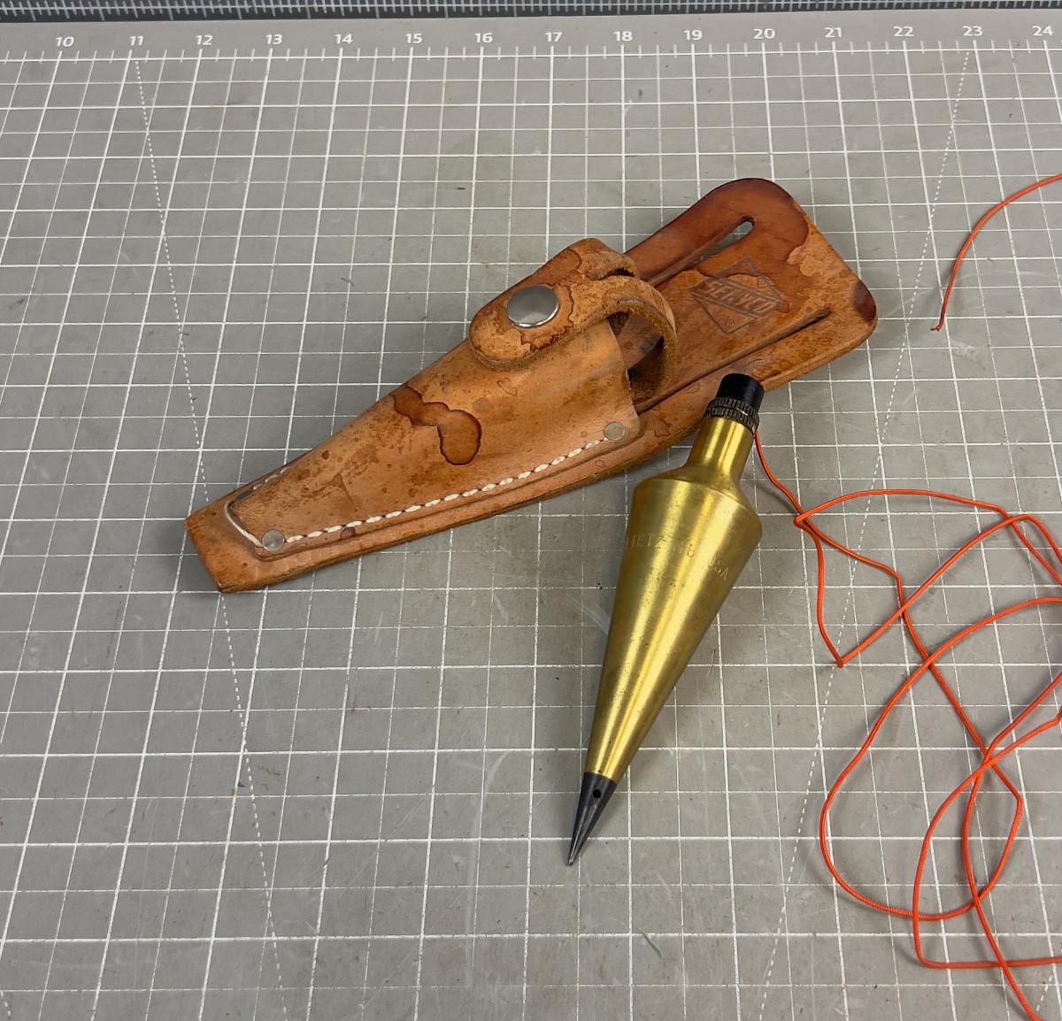 SOLID Brass Plum Bob with Leather Sheath