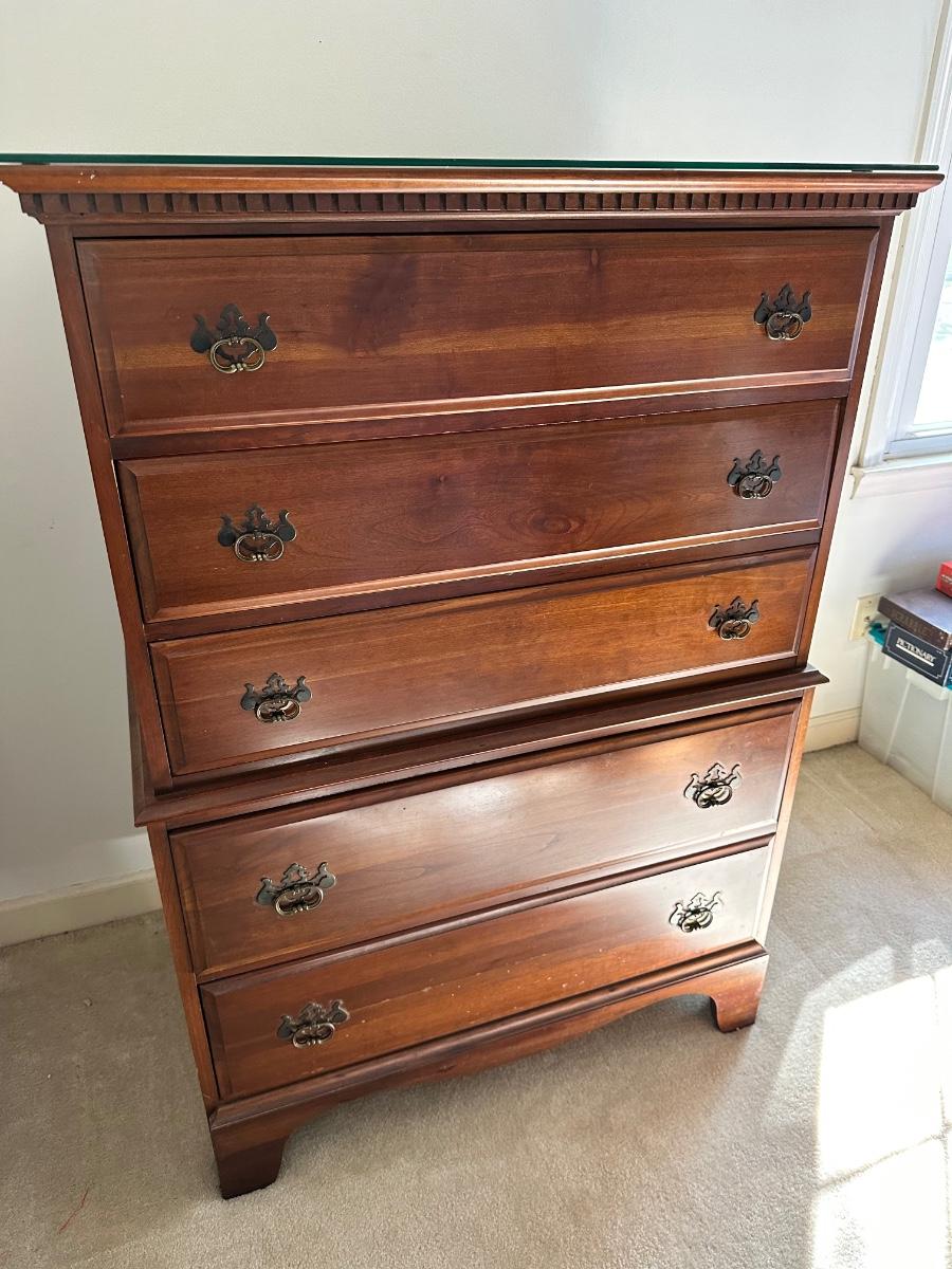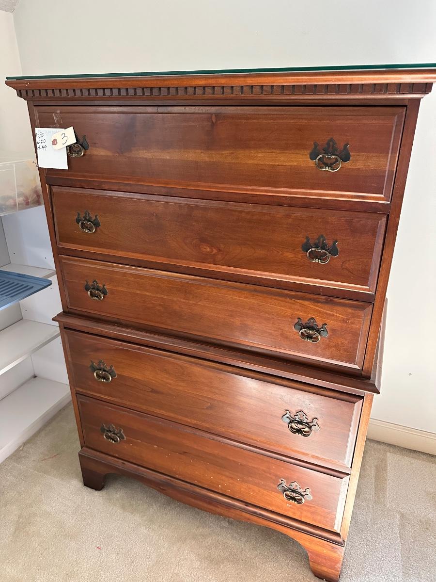 Solid Cherry 5 Drawer Chest w/ Removable Glass Top 35x20x49