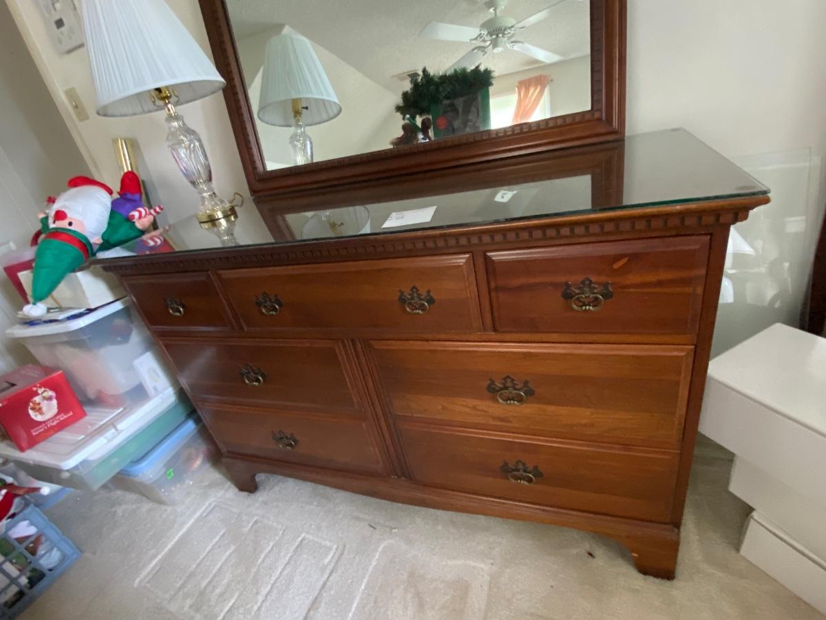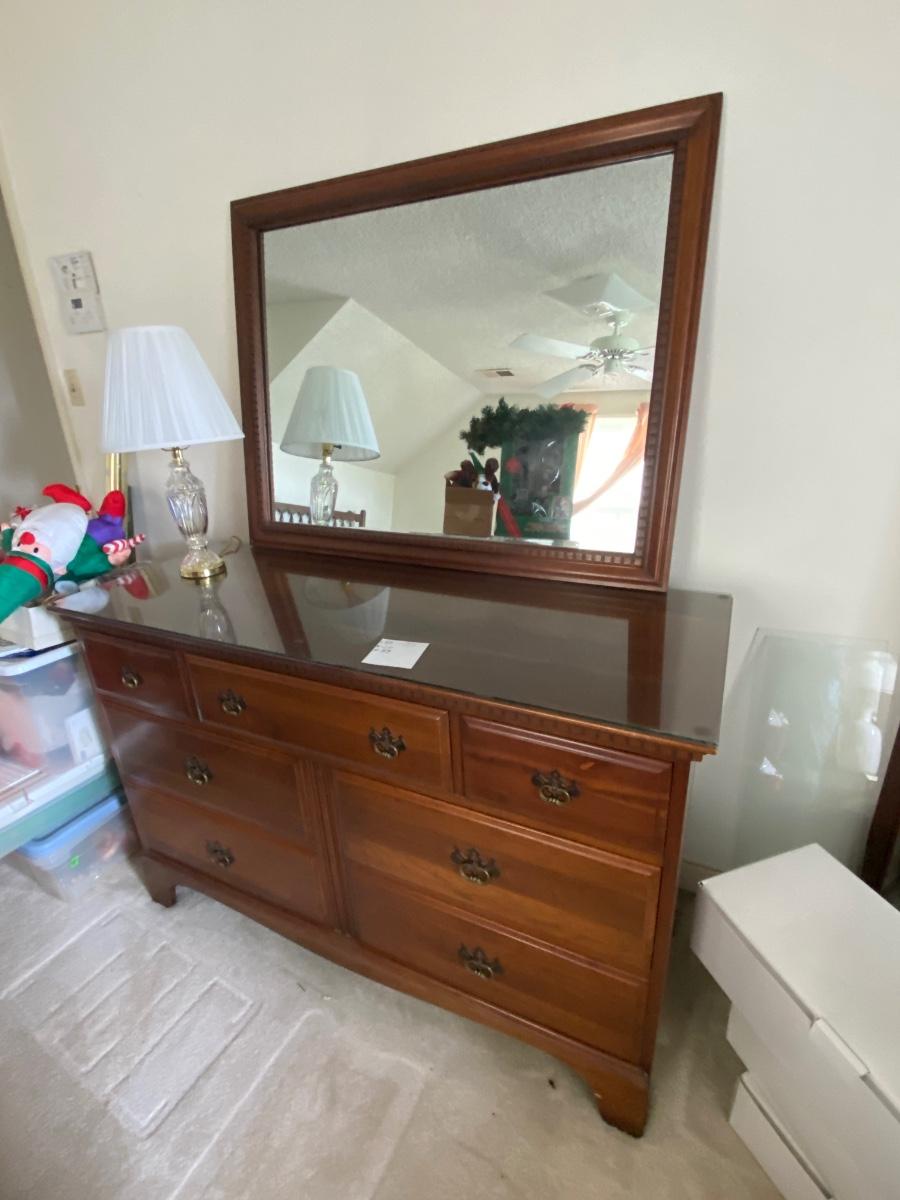 Solid cherry 52x20x33(without mirror) 7 drawer dresser in excellent condition with glass for top