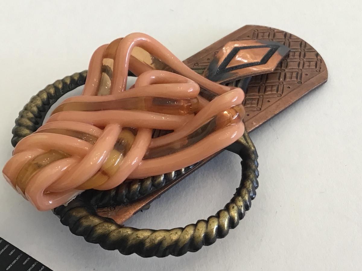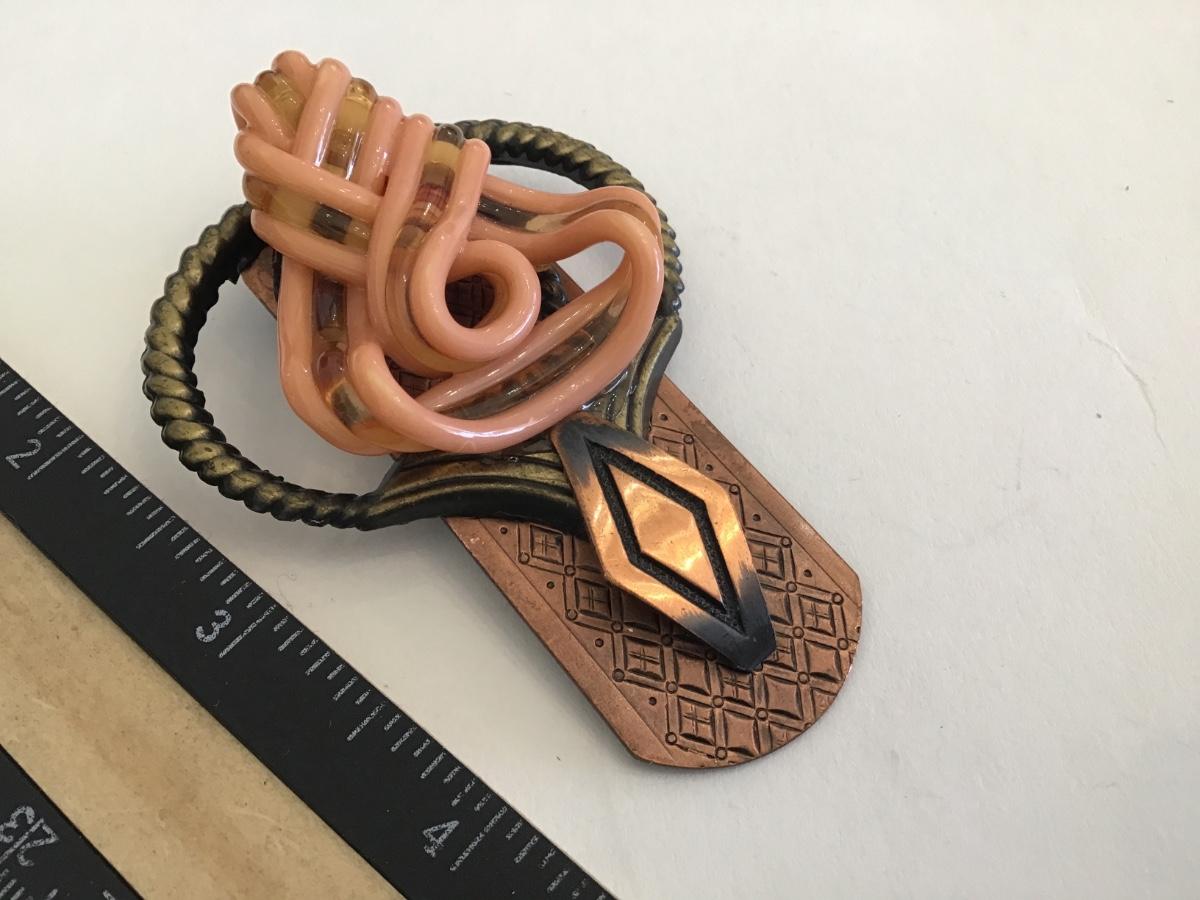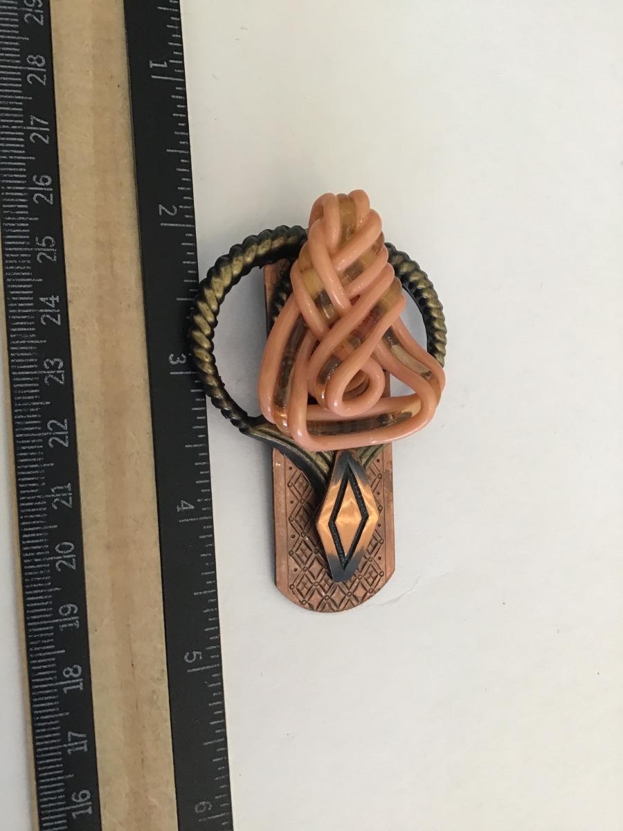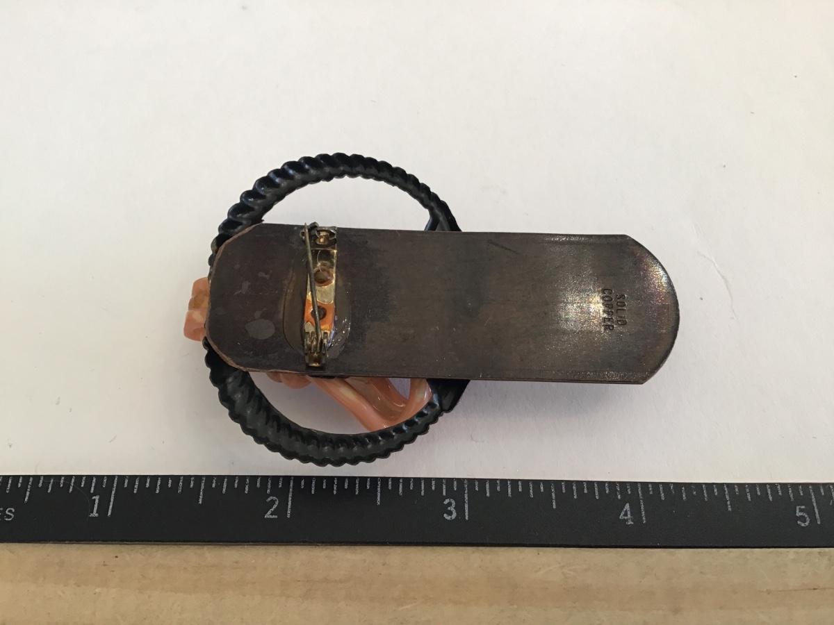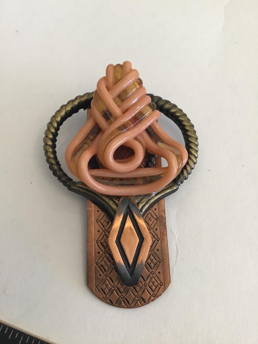 Solid Copper Art Glass Brooch Vintage Unique