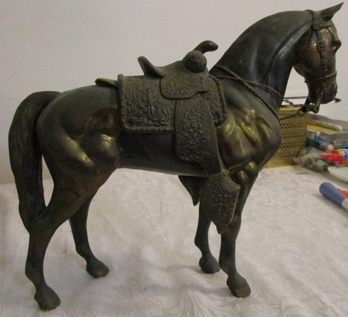 Solid Copper-plated bronze horse with saddle separate from the horse
