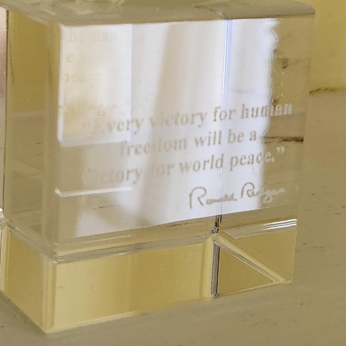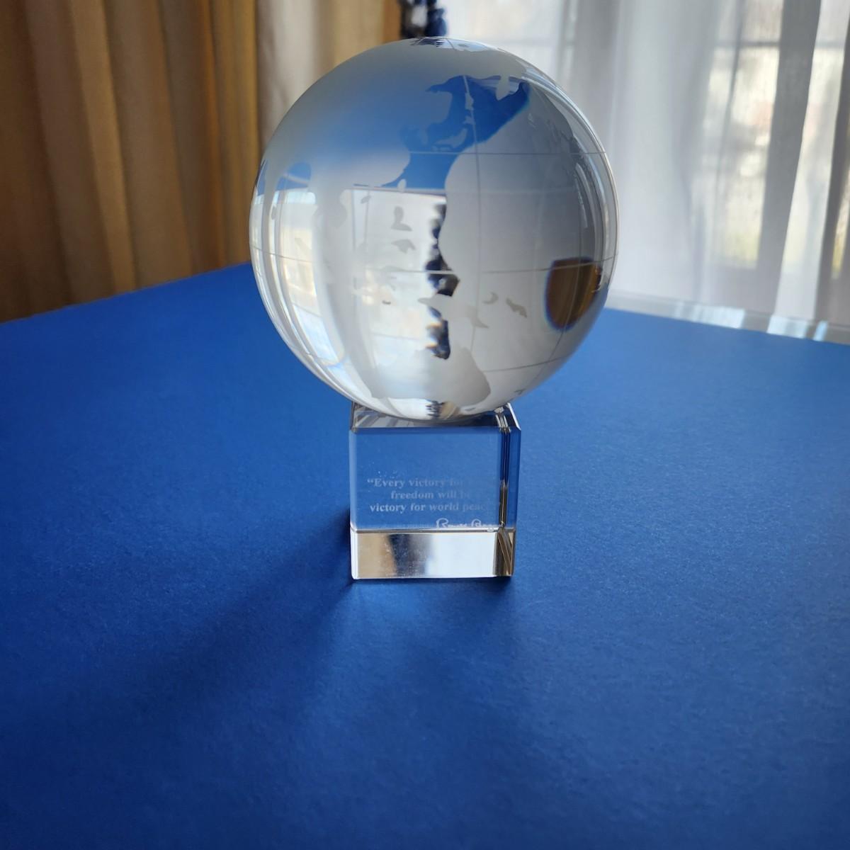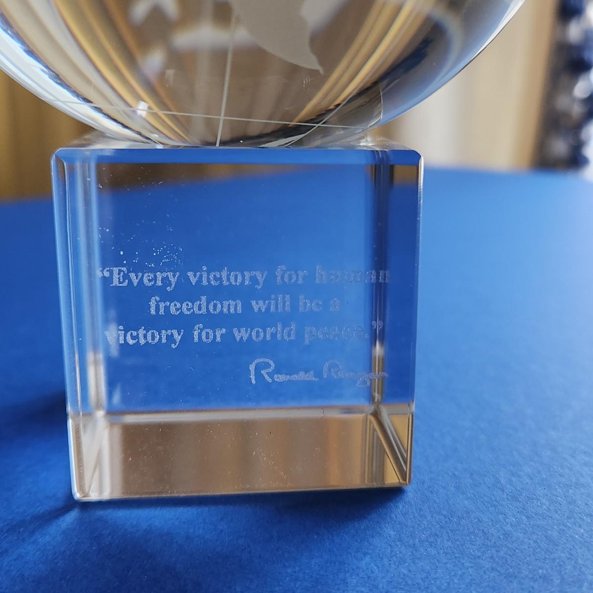 Solid Glass etched Spinning Globe with Ronald Reagan Quote