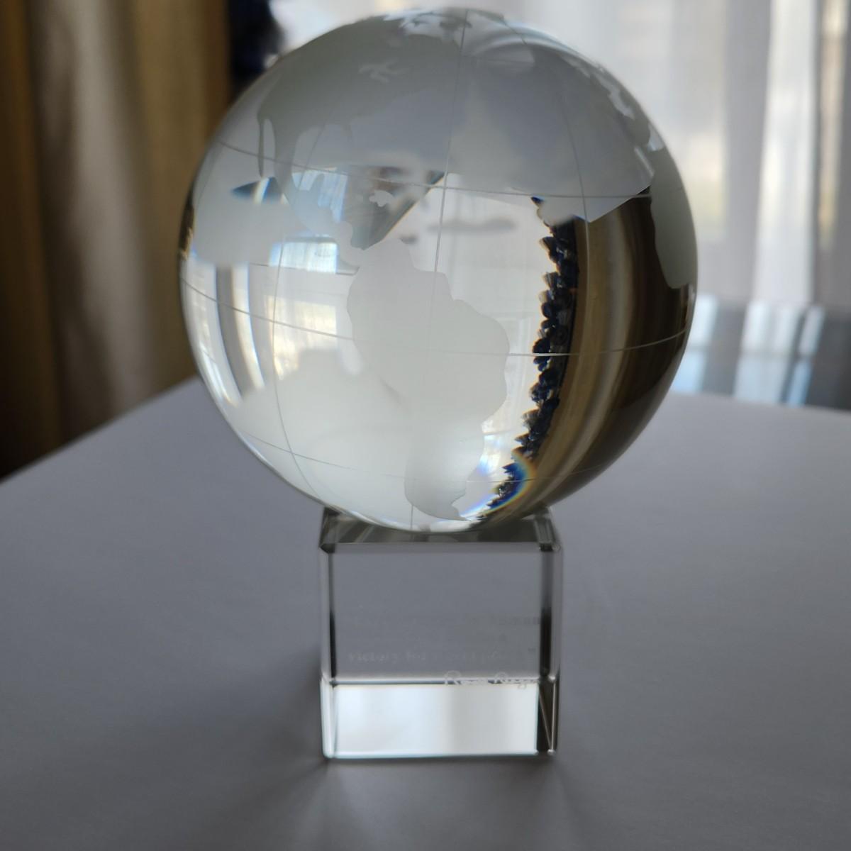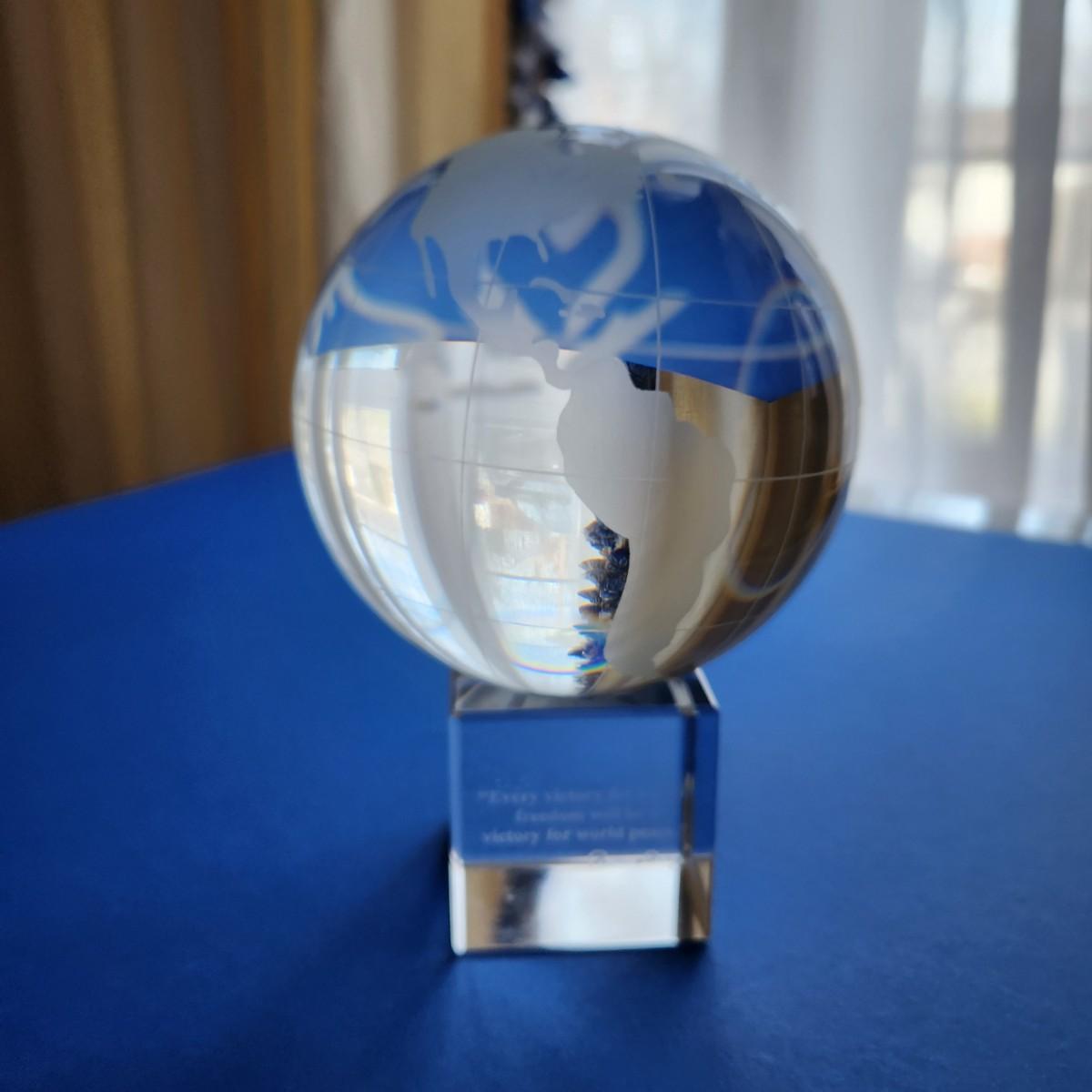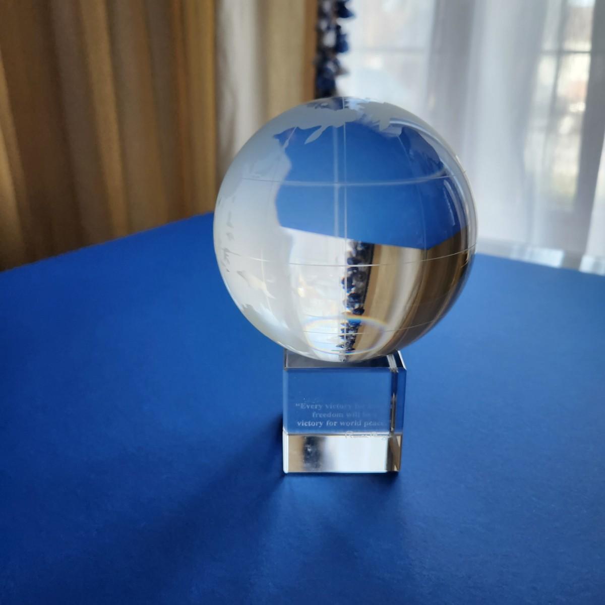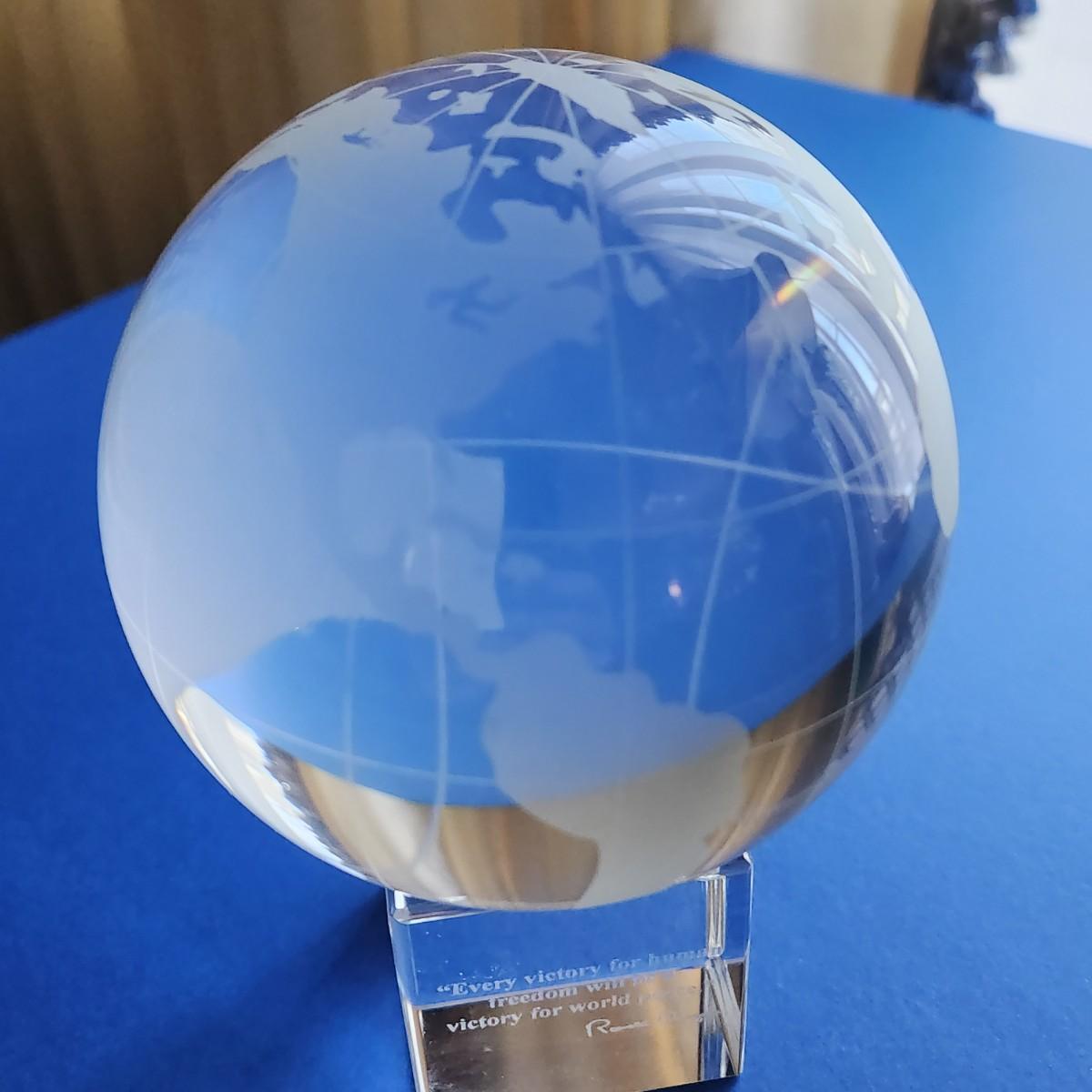 Solid Glass etched Spinning Globe with Ronald Reagan Quote