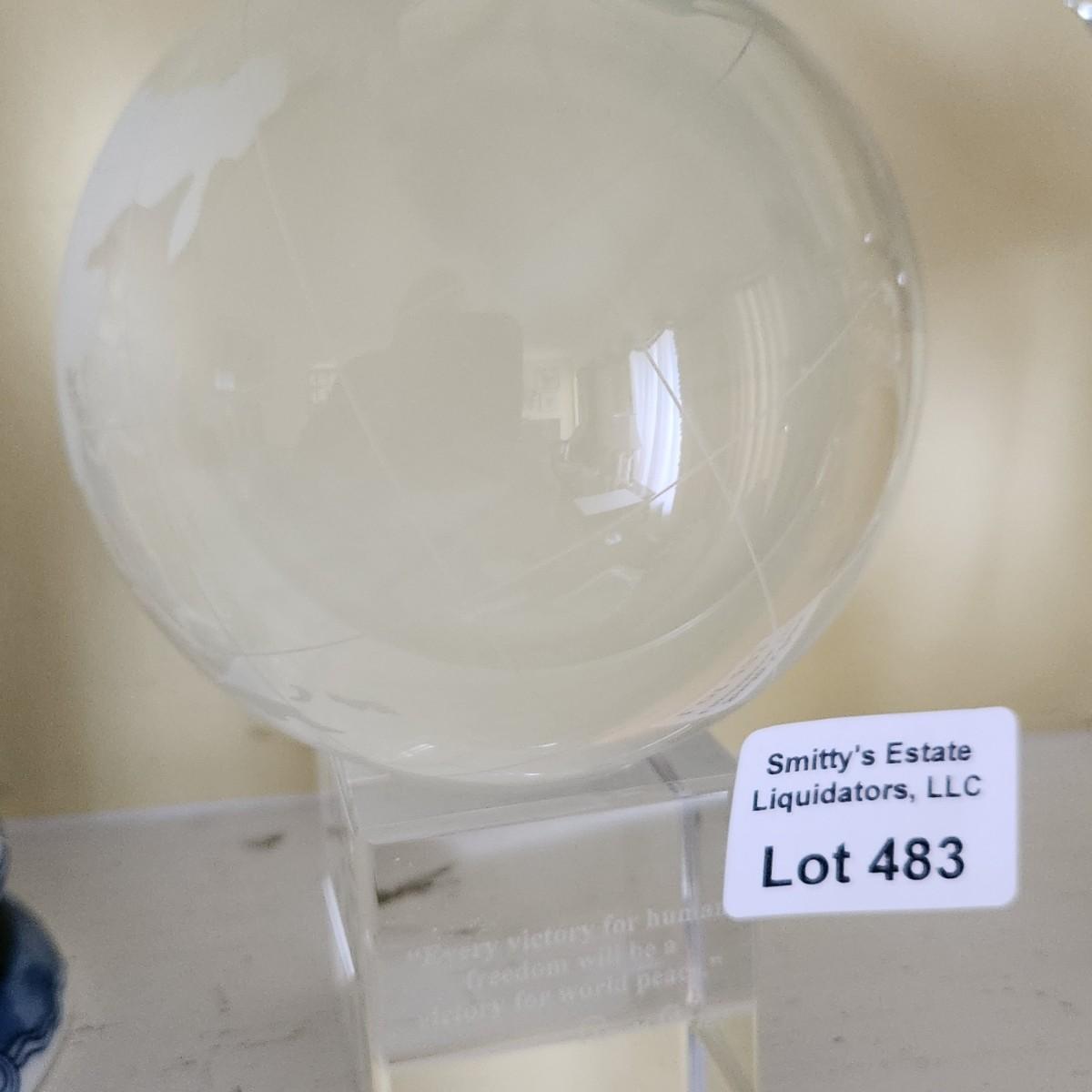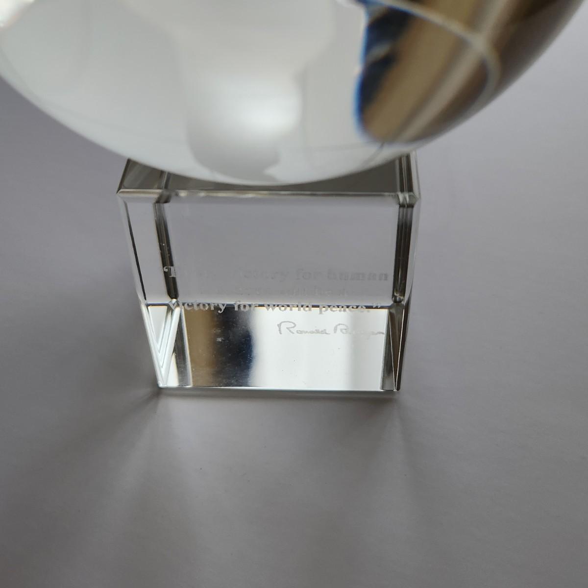 Solid Glass etched Spinning Globe with  Ronald Reagan Quote