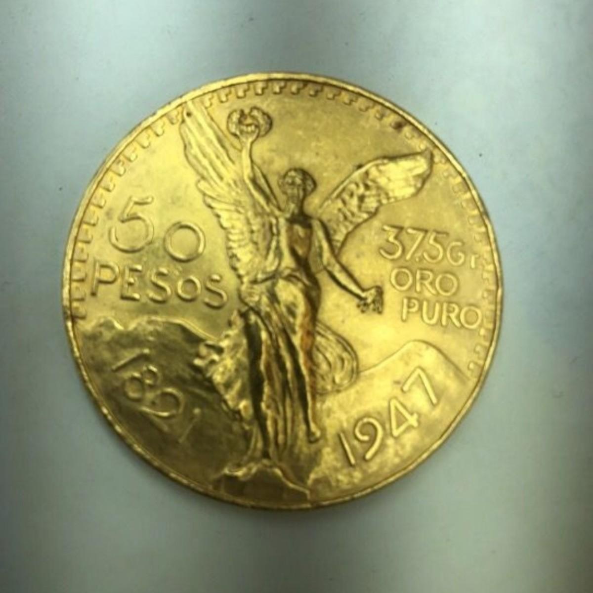 Solid gold 50 pesos coin