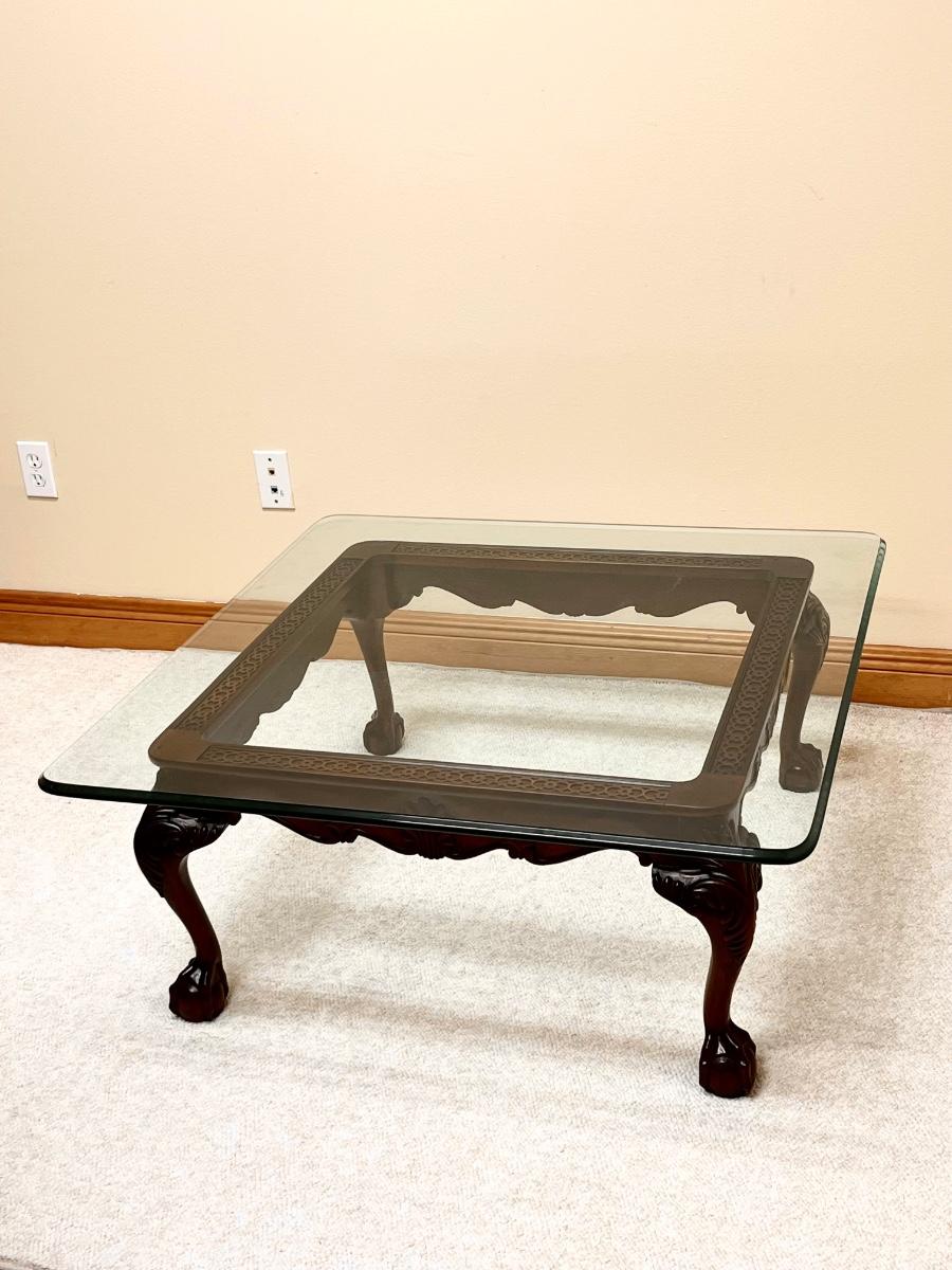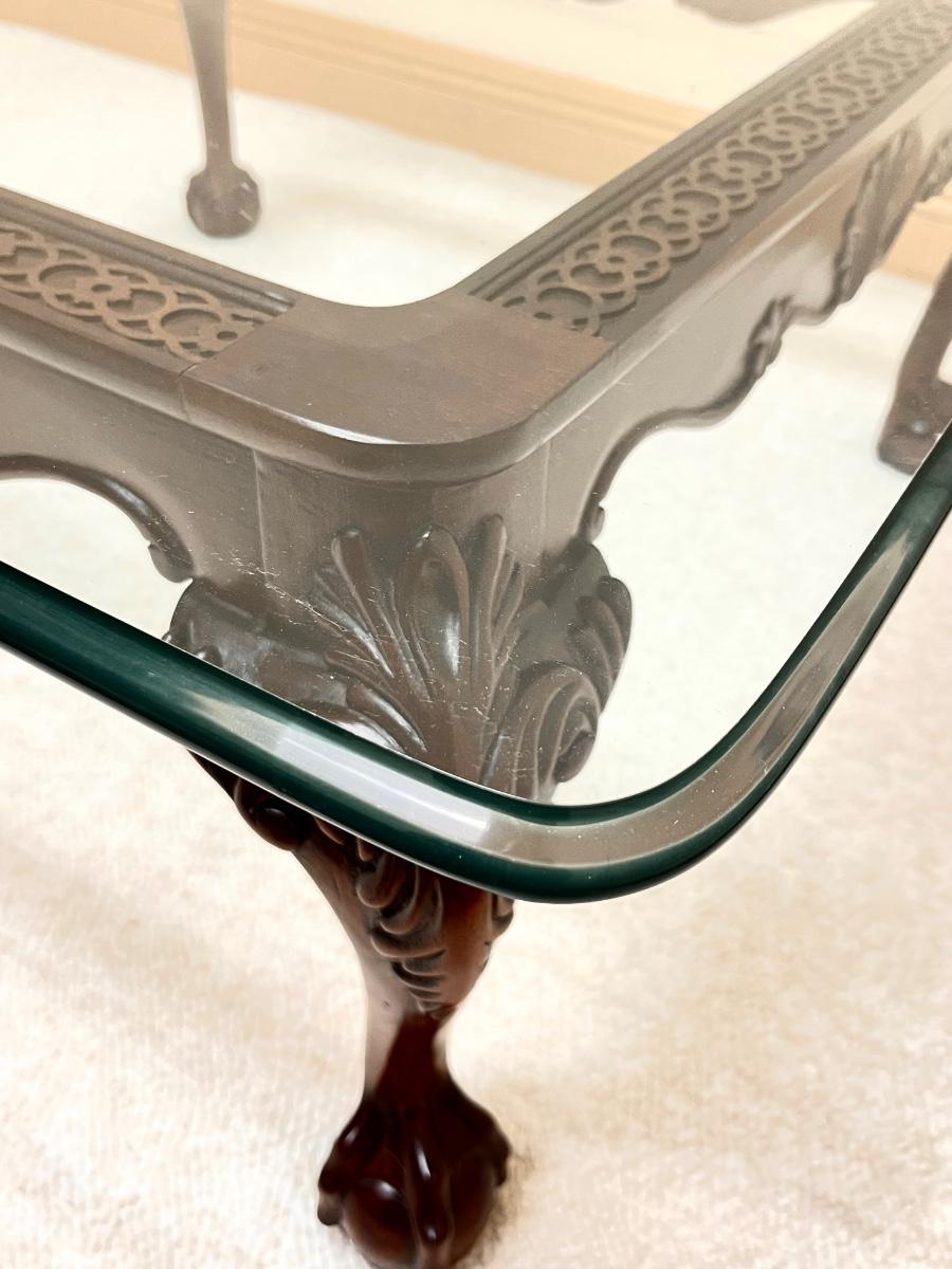 Solid Mahogany Clawfoot Glass Top Coffee Table