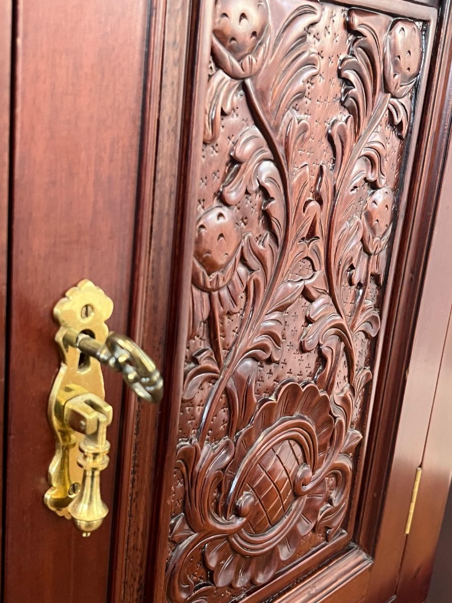 84” H x 36” W x 14” D ~ No brand name found ~ Skeleton key included