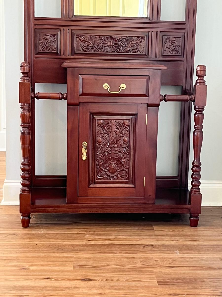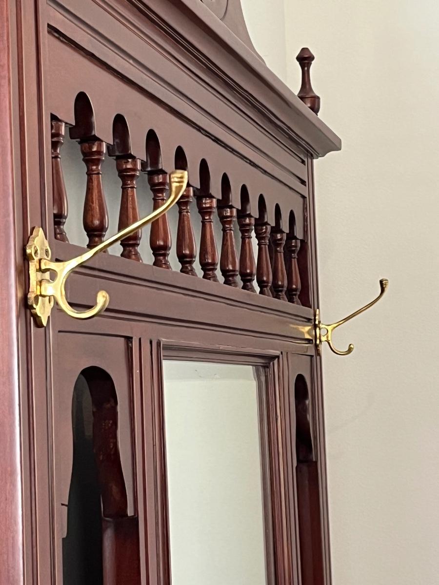 Solid Mahogany Reproduction Hall Stand ~ With Spindle Legs & Brass Hardware